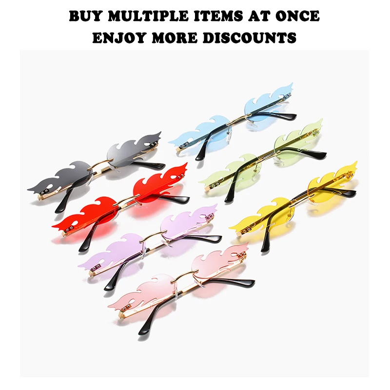 Лидер продаж, солнцезащитные очки без оправы с искусственным пламен...