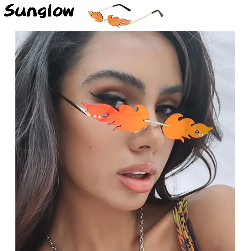 Модные женские солнцезащитные очки в форме пламени 2021, дизайнерские брендовые декоративные очки Luxuri без оправы, высококачественные зеркальные солнцезащитные очки для вечеринок