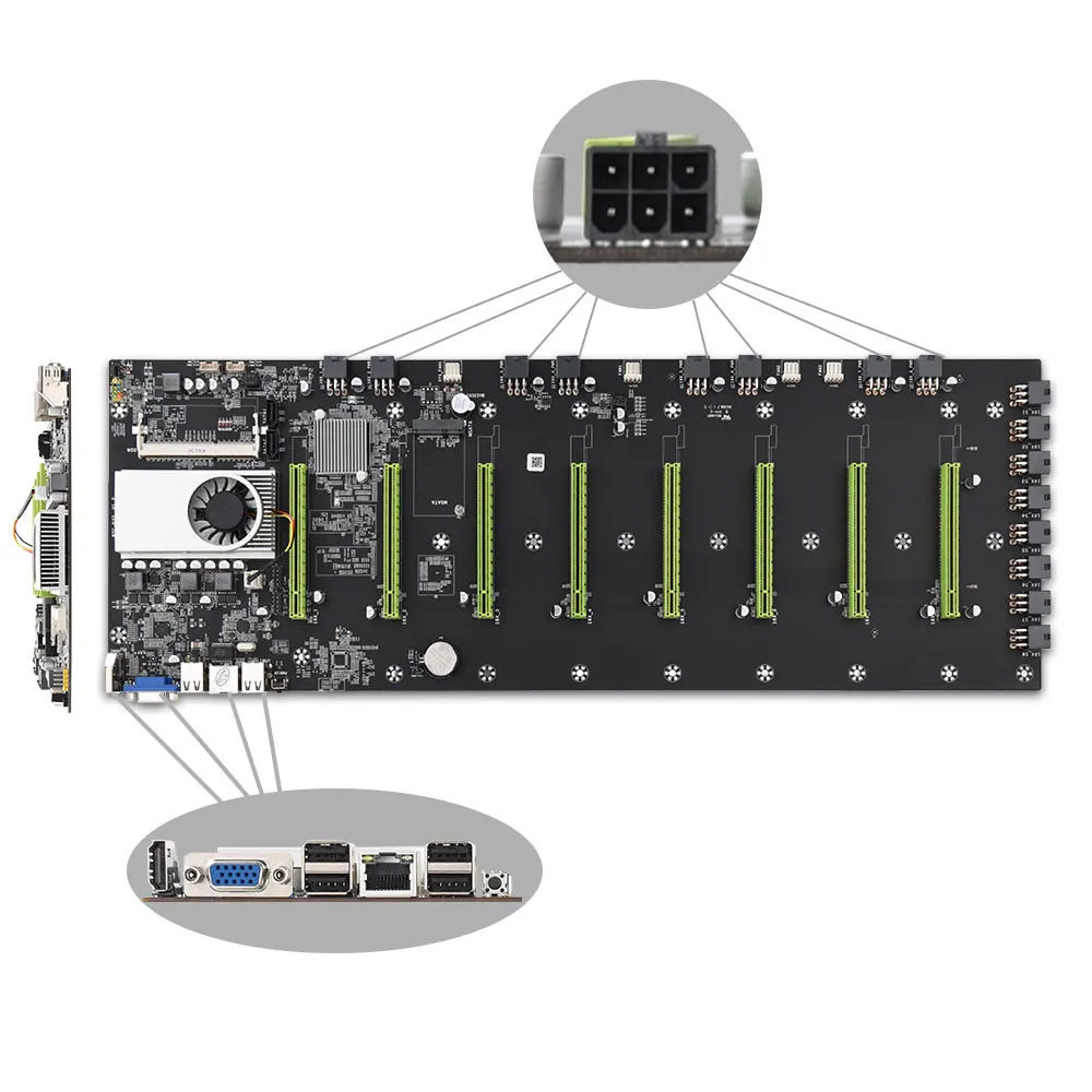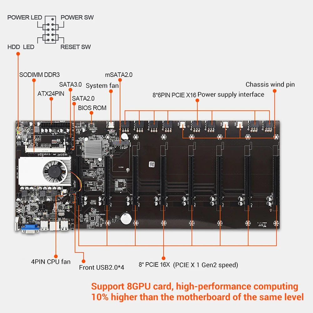 Материнская плата для майнинга BTC S37 D37 T37, 8 портов PCIE X16 для графической карты GPU, SODIMM DDR3 1066 1333 1600 МГц BTC ETH, Майнер биткоинов
