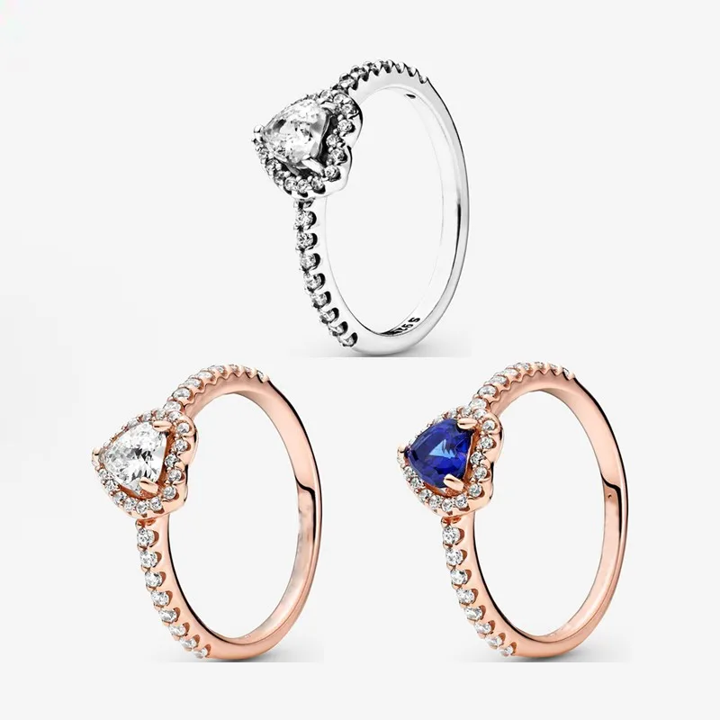 Новинка 2021, элегантное блестящее синее кольцо из стерлингового серебра 925 пробы в форме сердца, подходит для женского подарка