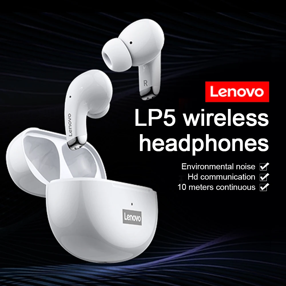 Новые миниатюрные Bluetooth-наушники Lenovo LP5, стерео 9D, водонепроницаемые беспроводные наушники для iPhone 13, Xiaomi, Bluetooth-наушники с микрофоном
