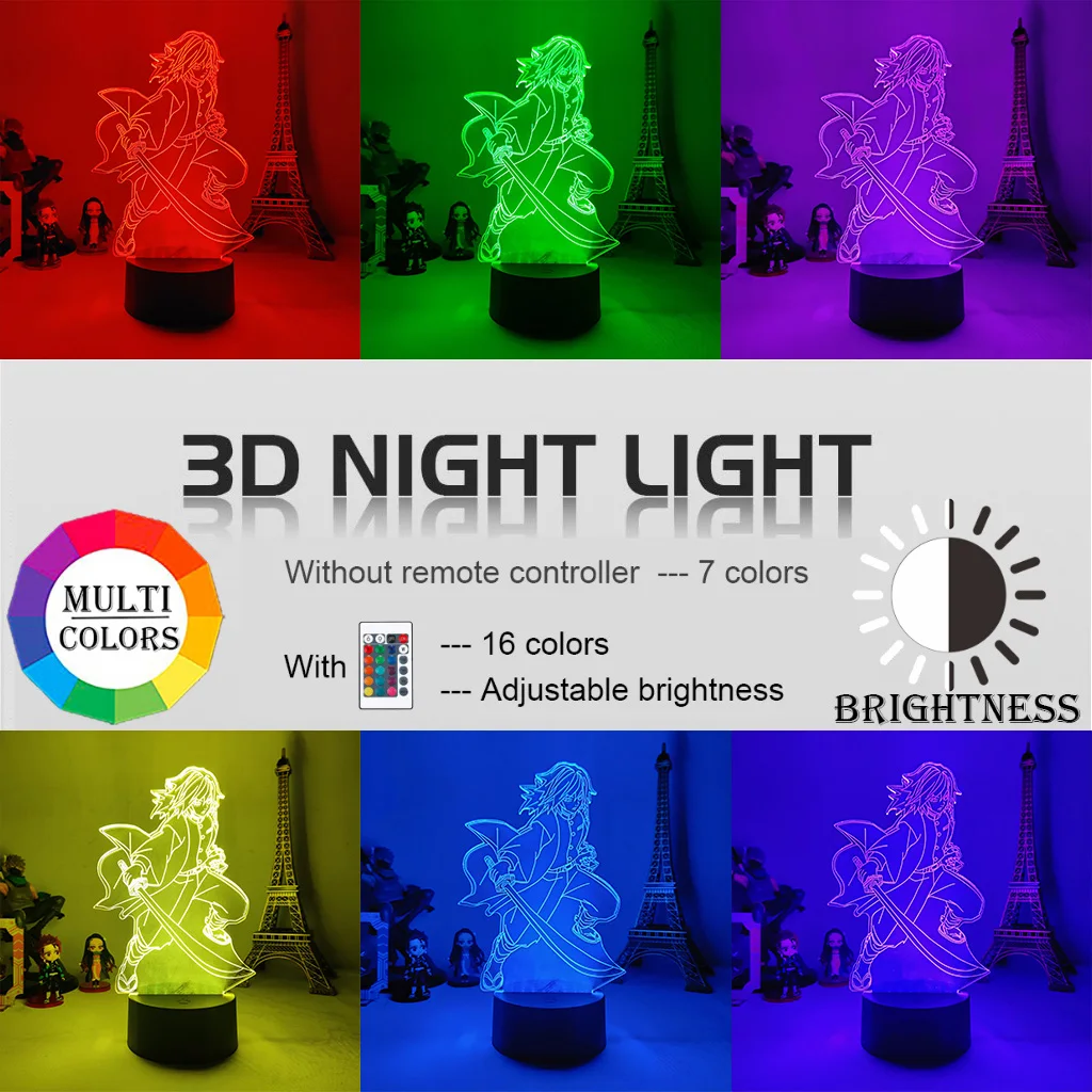 Ночсветильник Giyu Tomioka в стиле аниме Kimetsu No Yaiba для спальни, Декор, искусственный подарок, манга, гаджет, лампа Giyuu, рассекающий демонов