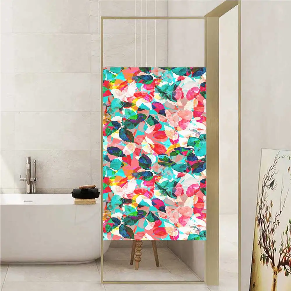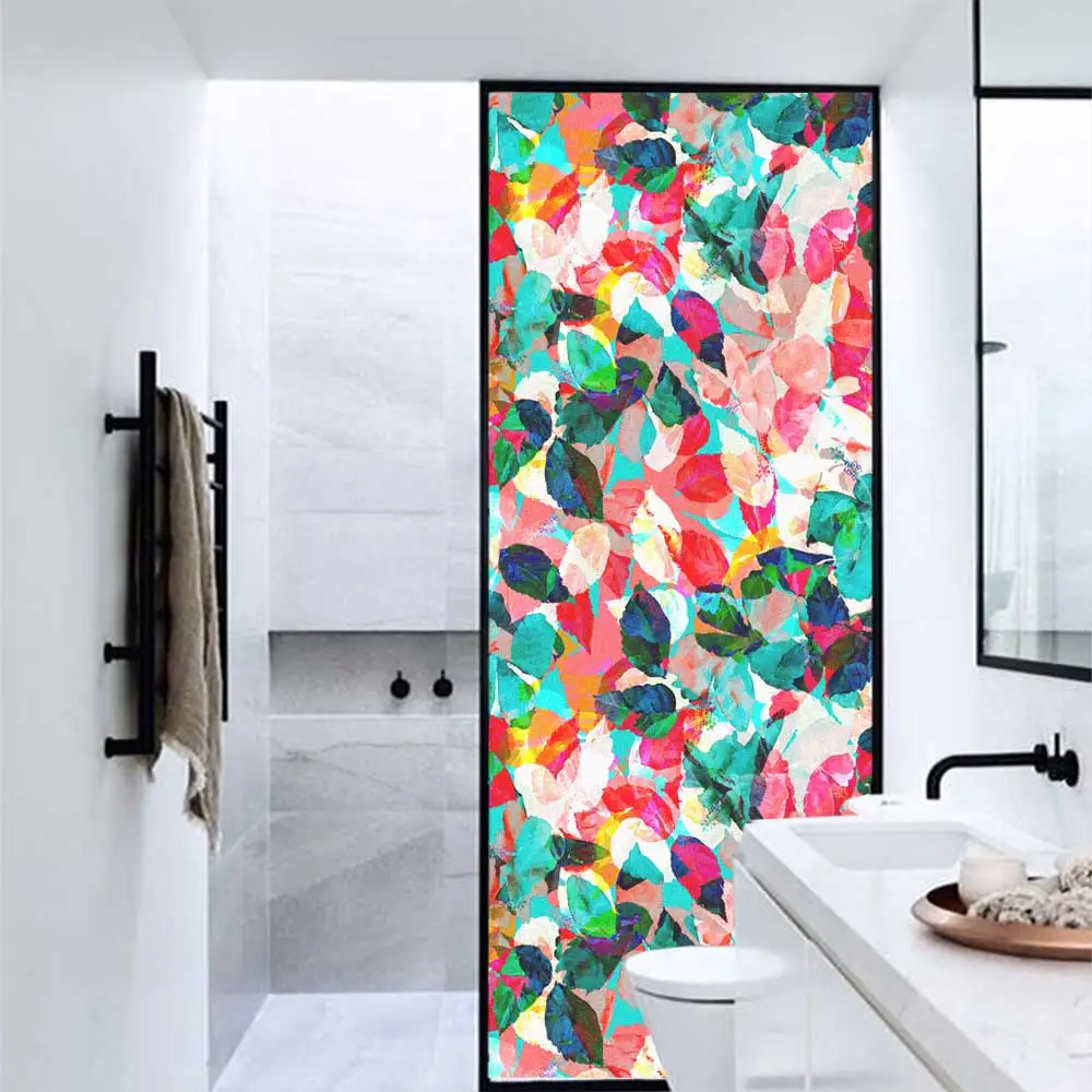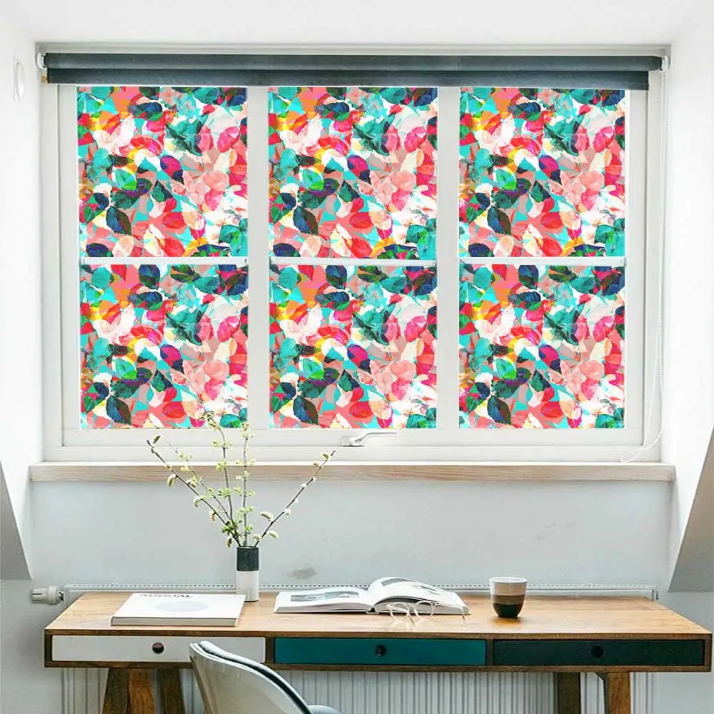 Оконная пленка для конфиденциальности, красочные листья, матовая, без клея, стеклянная наклейка, защита от солнца, термоконтроль, Оконные покрытия для домашнего декора