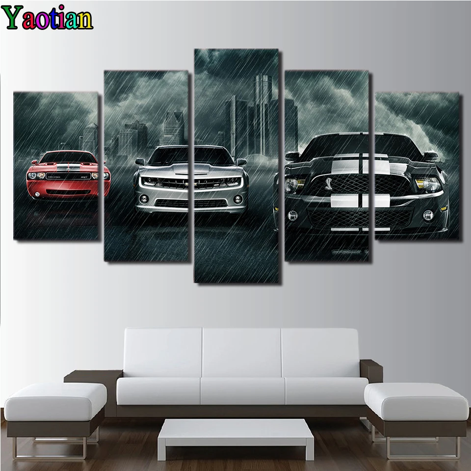 5 шт. Роскошные изображения мышечных автомобилей, алмазная вышивка, полная круглая 3d-вышивка крестиком, мозаика, алмазная живопись Стразы