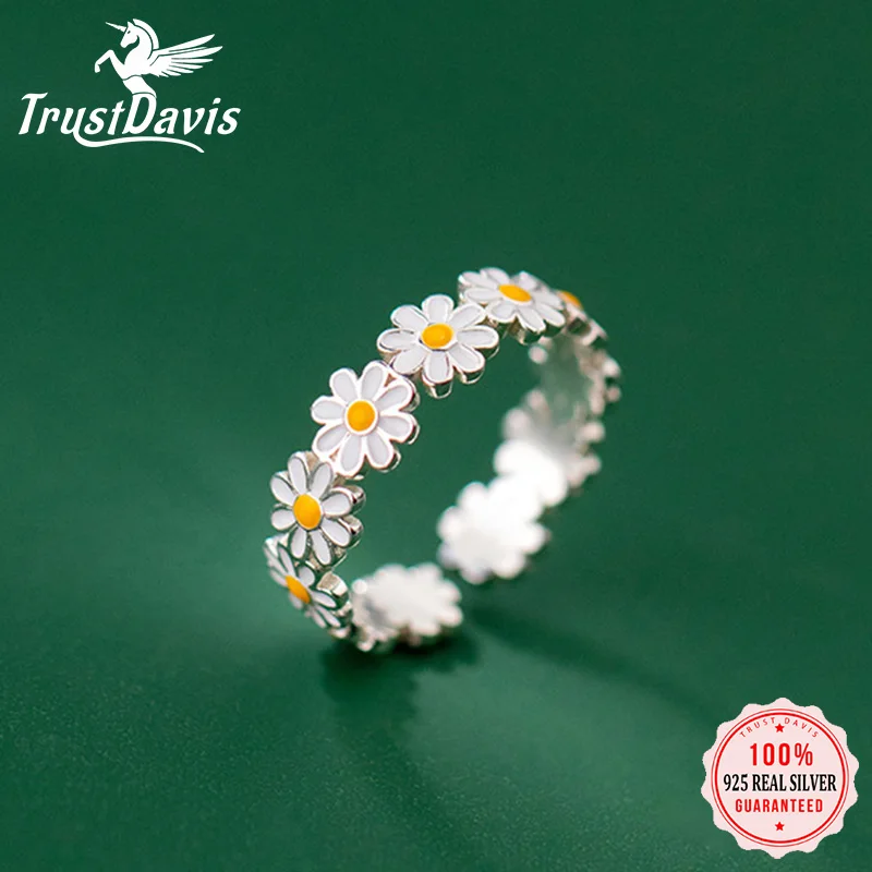 Женское кольцо с цветком маргаритки TrustDavis, открытое из настоящего серебра 925 пробы с белой глазурью, для свадебной вечеринки, ювелирные украшения из драгоценных камней DA2454
