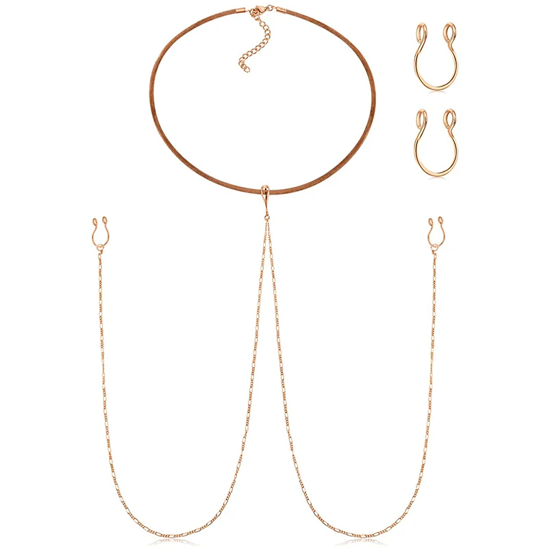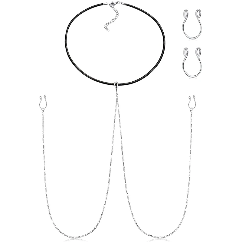Зажим для соски, поддельные кольца для соски с чокером, ожерелья из нержавеющей стали, кольца для сосков в стиле панк, Чокеры для женщин, раньше