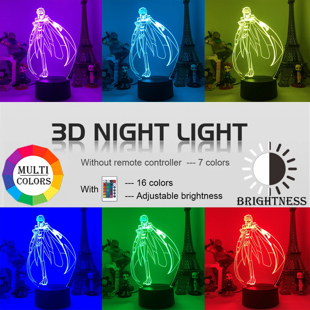 Светодиодный ночник с кодом Geass Suzaku Kururugi, 3d лампа, аниме для комнаты, декор, светильник, детский подарок на день рождения светильник ильник, декоративные игрушки