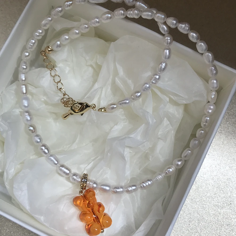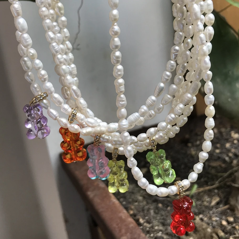 Подвеска в виде медведя из искусственного жемчуга Y2K, для женщин, Колье чокер с бусинами