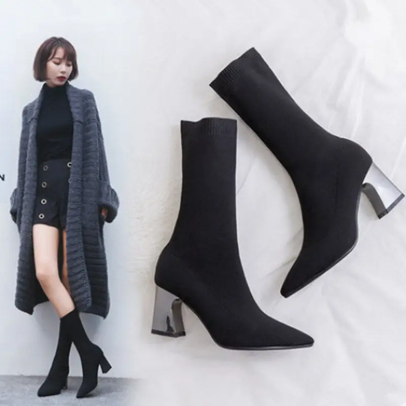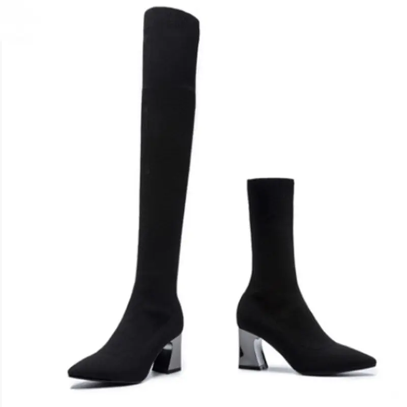 Сапоги стрейч RYAMAG из 2021 шерсти, женские сапоги выше колена, тонкие сапоги на толстом высоком каблуке, сапоги-носки, короткие сапоги
