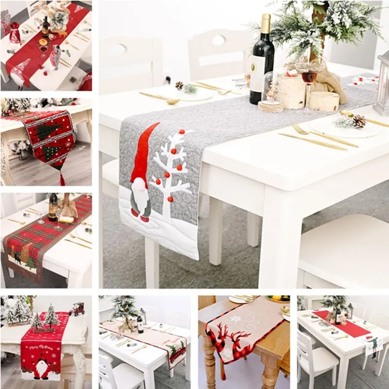 Рождественская льняная настольная дорожка, Рождественское украшение...