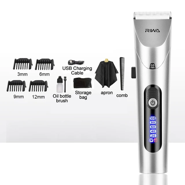 RIWA RE-6305 моющаяся перезаряжаемая машинка для стрижки волос, профессиональный триммер для парикмахера с регулируемой головкой
