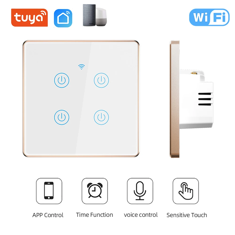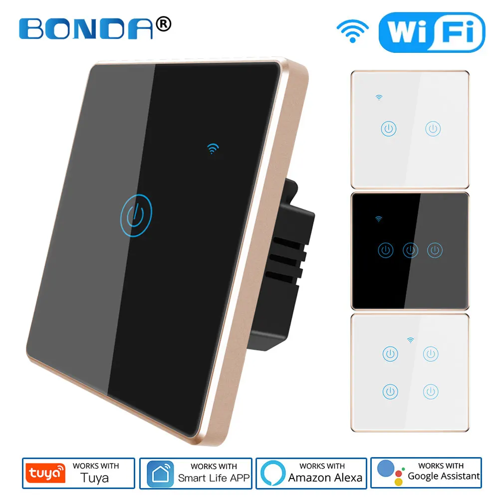 Умный выключатель Tuya с поддержкой Wi-Fi, рамой из алюминиевого сплава и стеклянной панелью управления, работает с Google Home Smart Home, сенсорными выключателями Alexa