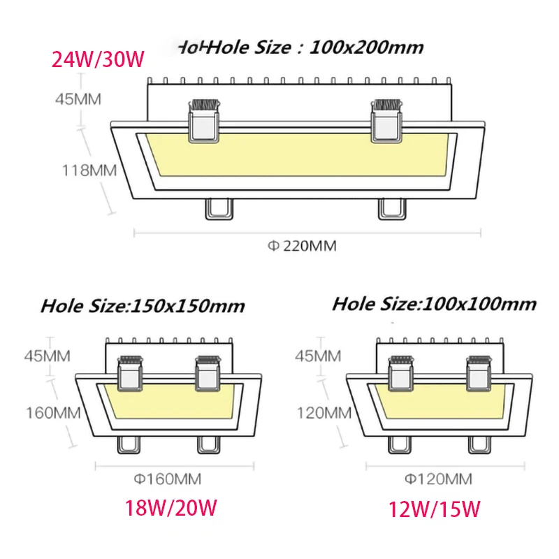 Приглушаемая Встраиваемая Светодиодная панель направленного света 12 Вт, 15 Вт, 18 Вт, 20 Вт, 24 Вт, 30 Вт, Квадратный светодиодный точесветильник светильник, Светодиодная потолочная лампа, 220 В переменного тока