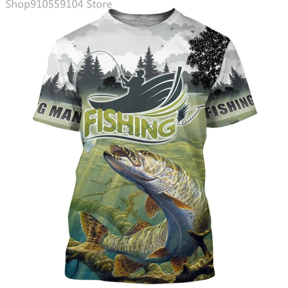 Мужская футболка с 3D-принтом рыбалки, Повседневная футболка с прин...