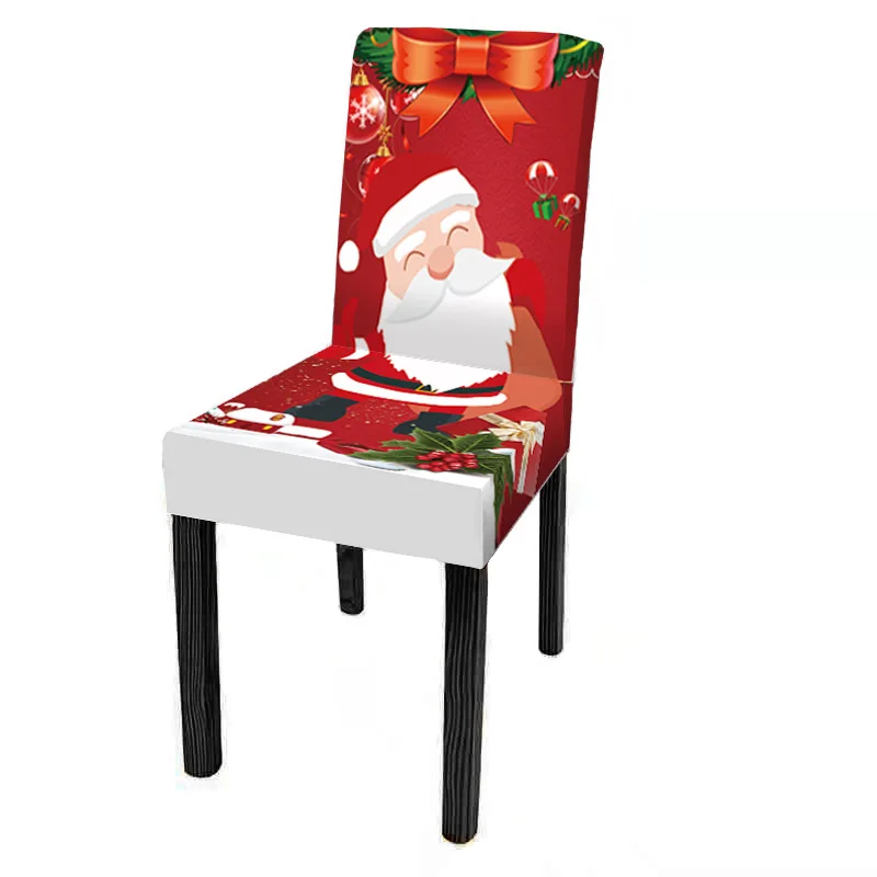 Рождественское эластичное покрытие для обеденного стула с принтом, современное съемное антигрязное кухонное сиденье, Чехол Эластичный Банкетный чехол на стул