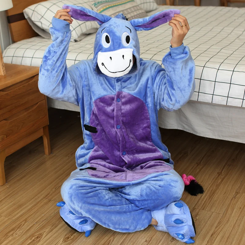 Комбинезон в виде единорога, унисекс, зимний комбинезон в виде милой панды, Тоторо, ститча, женская одежда для сна, Аниме Костюмы, Фланелевая Пижама для взрослых