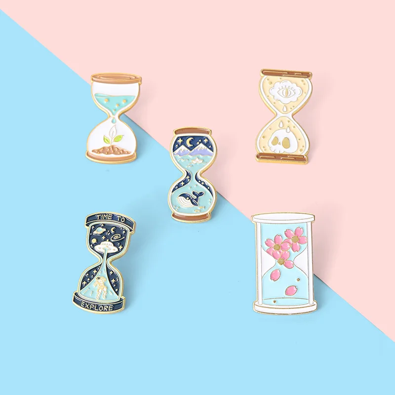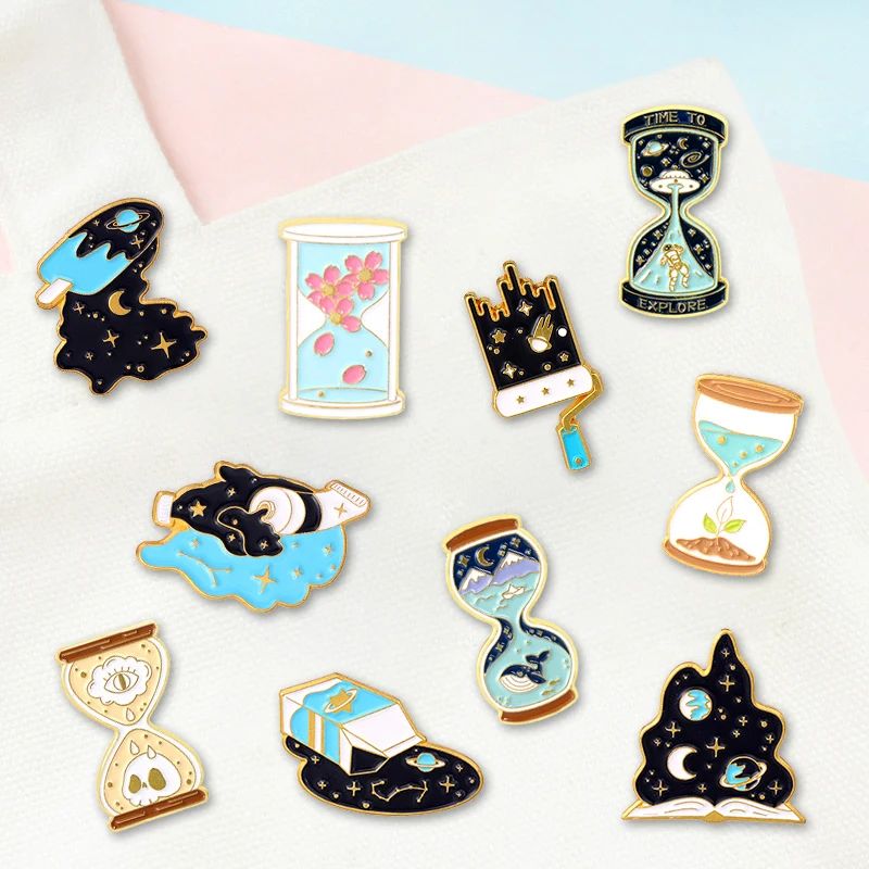 Креативные модные Мультяшные песочные часы звездного неба, брошь на лацкан с каплей масла, значок, булавка для сумки, подарок для мужчин и женщин, модные украшения, тканевое украшение