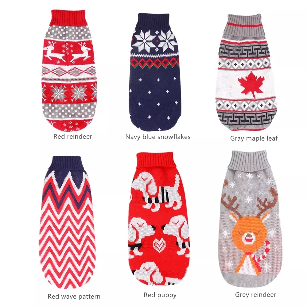 Рождественская винтажная одежда для собак, вязаный теплый свитер-во...