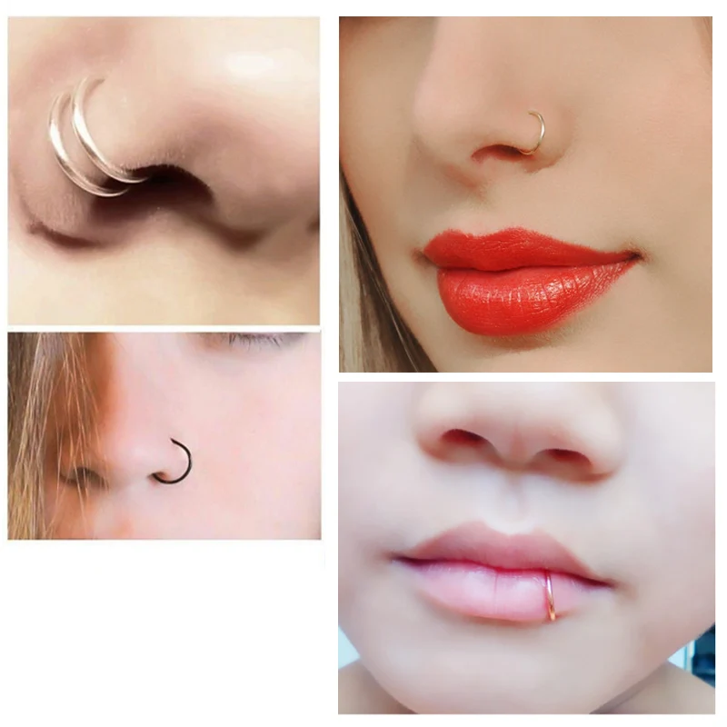 Кольцо для пирсинга носа, С-образное, из нержавеющей стали, пирсинг хряща уха, для женщин, украшения для тела, 2 шт.