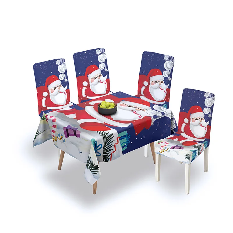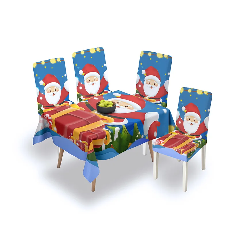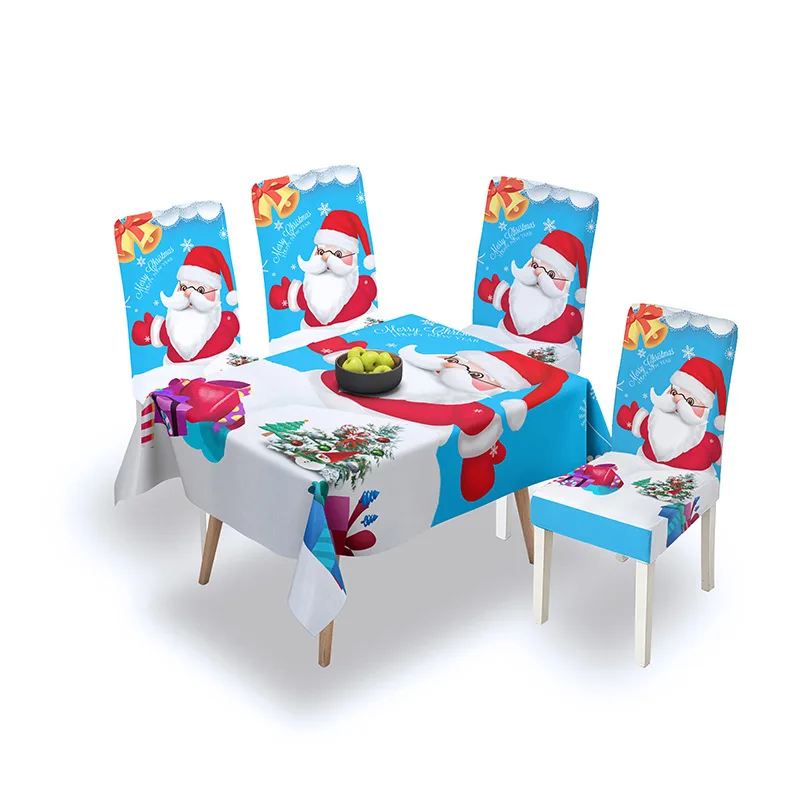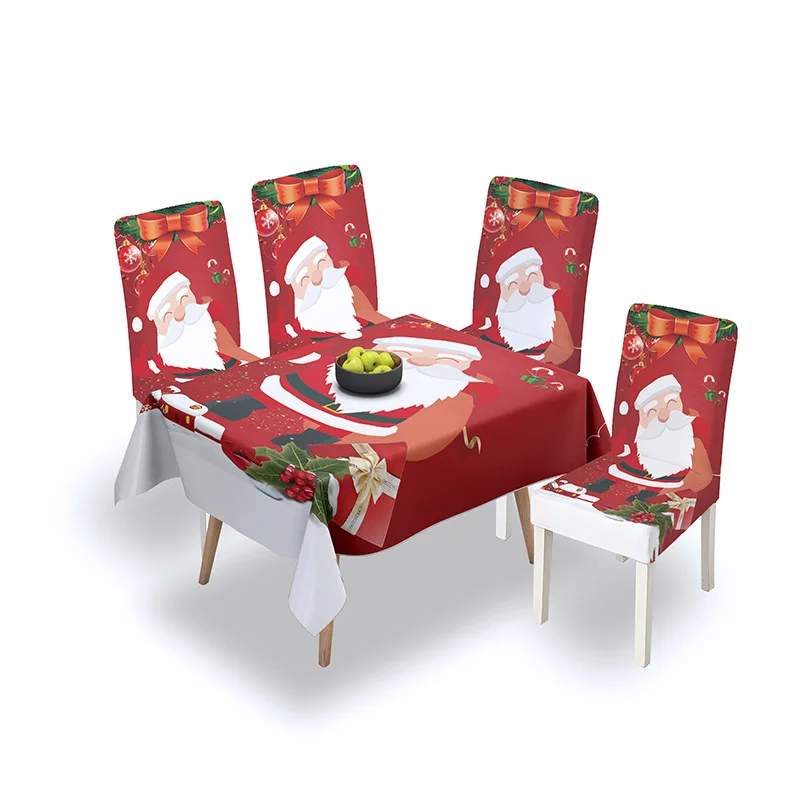 Эластичная Рождественская скатерть, Набор чехлов для стульев, украшение для кухонного стола, водостойкий домашний текстиль