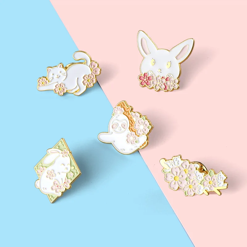 Эмалированная брошь в виде кошки, кролика, сакуры, котенка, кролика...
