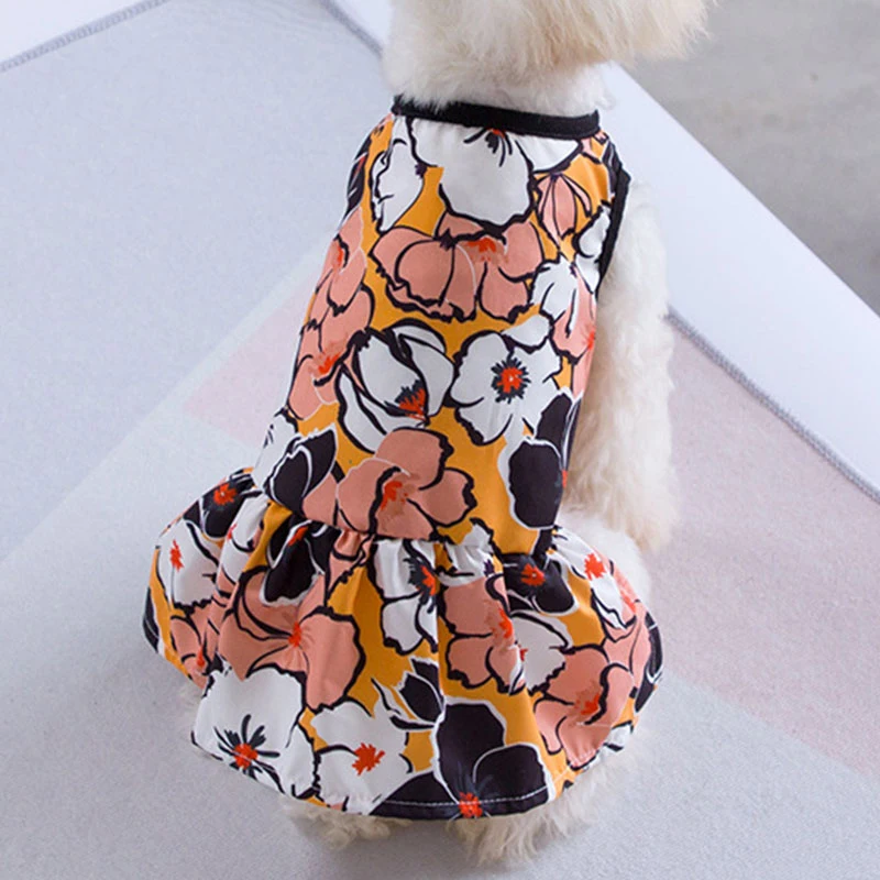 Новинка, милое платье для собаки с большими цветами, одежда для собаки, Уютная рубашка без рукавов для собаки, платье для питомца, сарафан, вечерняя юбка для маленьких собак для принцессы, наряд