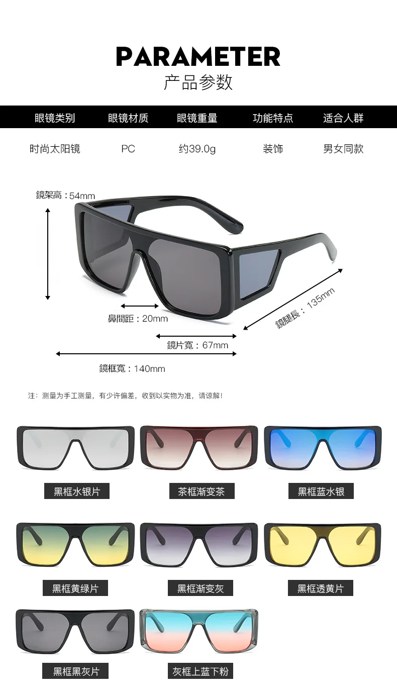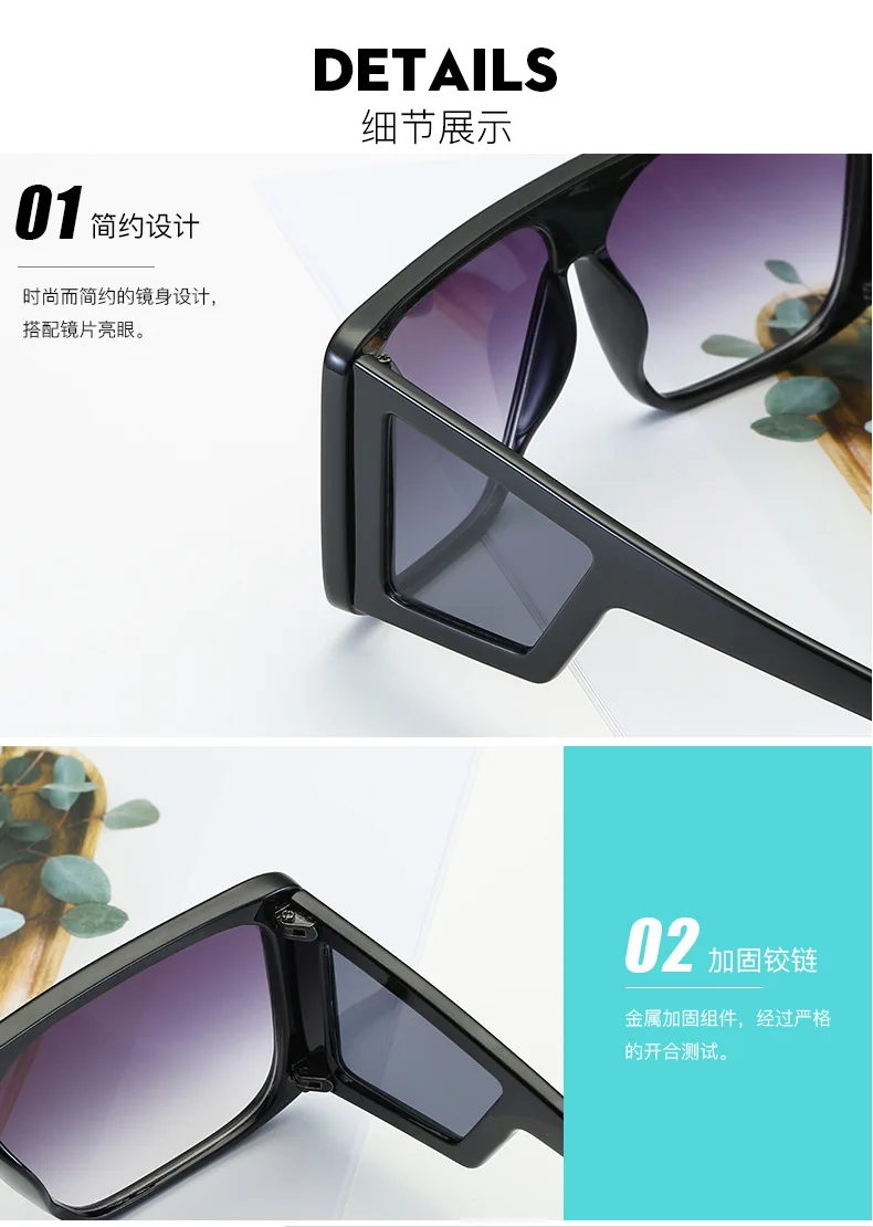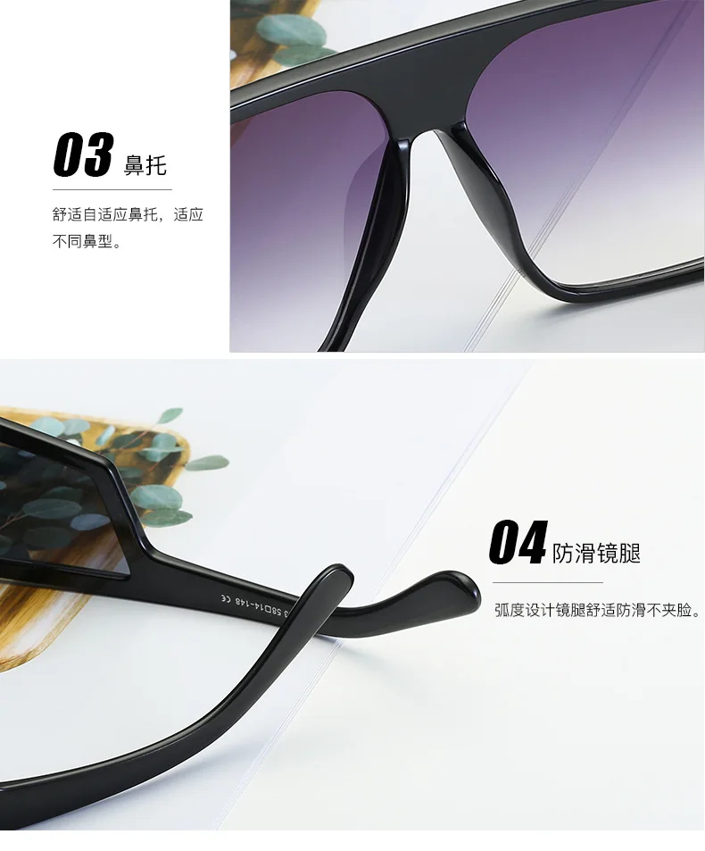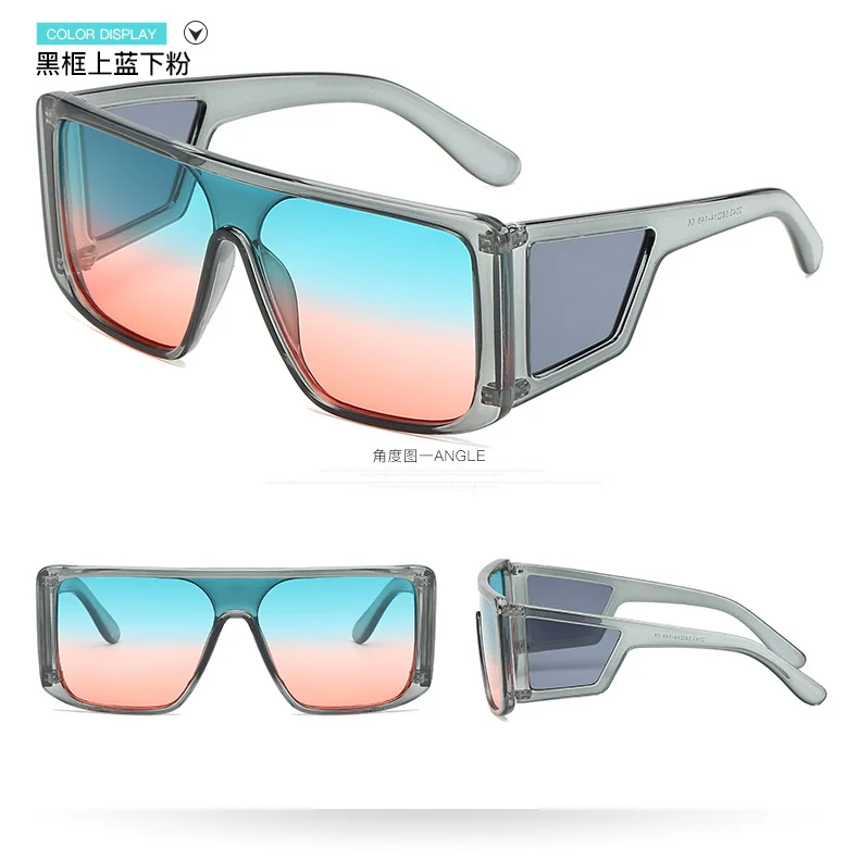Очки солнцезащитные женские квадратные большого размера, цельные модные градиентные солнечные очки в стиле панк с широкими штанинами и плоской крышей, uv400