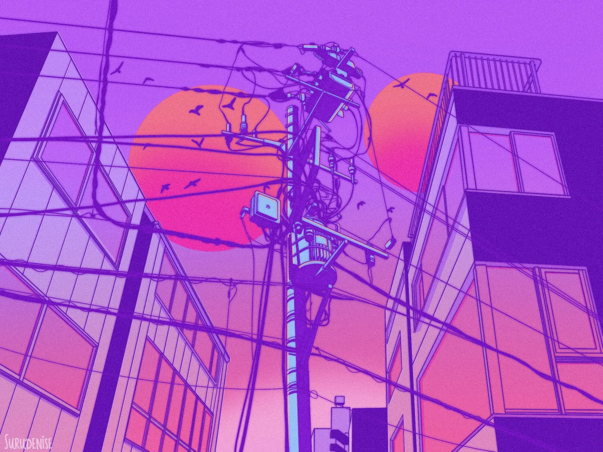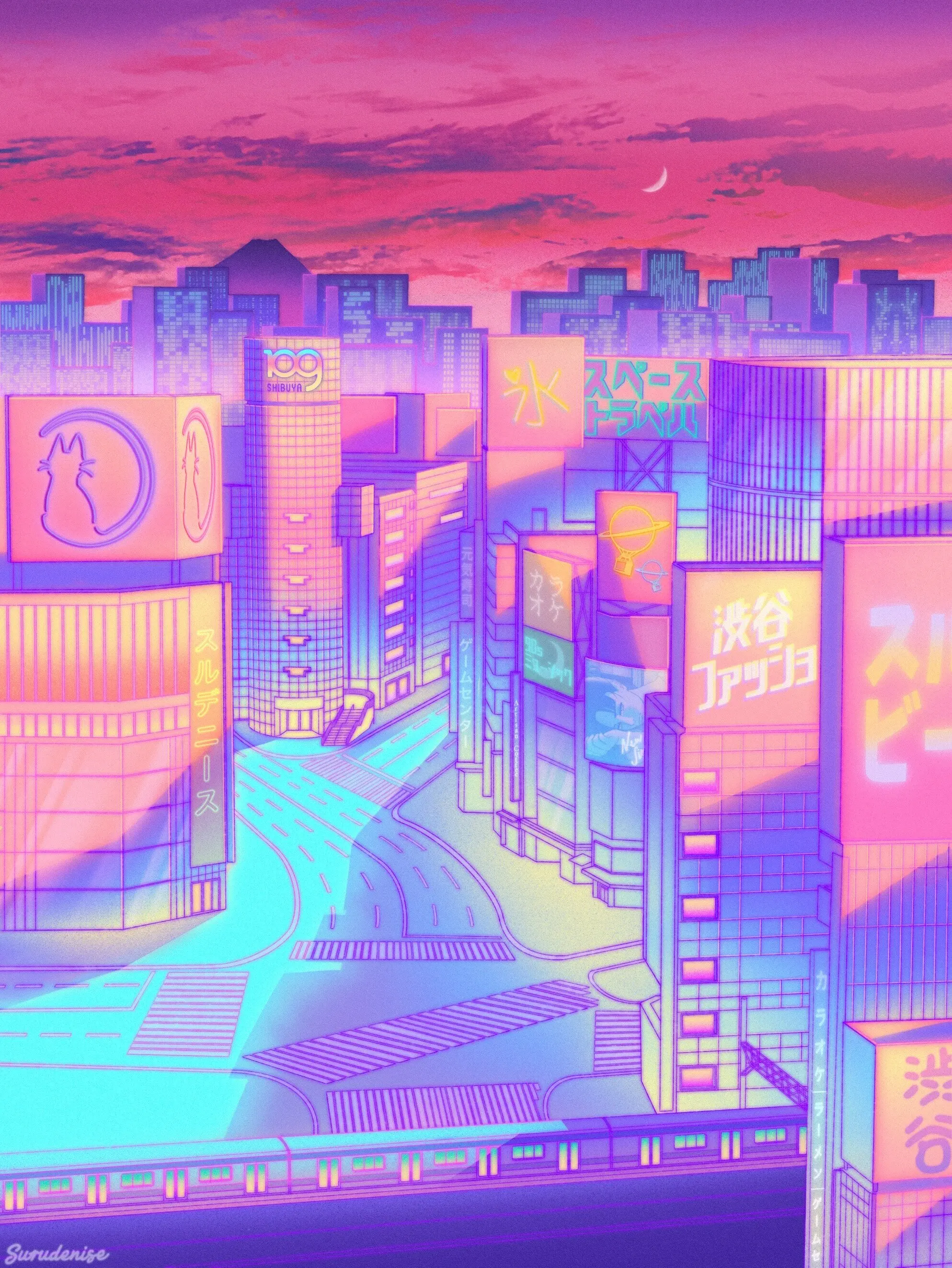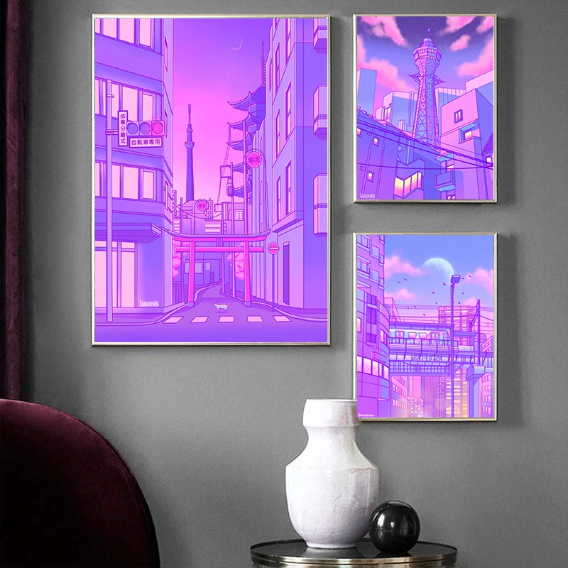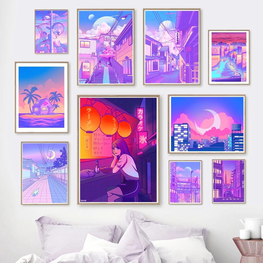 Плакат в стиле вейпорвейв 80-х годов, неоновый Ночной городской Уличный настенный художественный декор, кавайный декор комнаты, Холщовый плакат