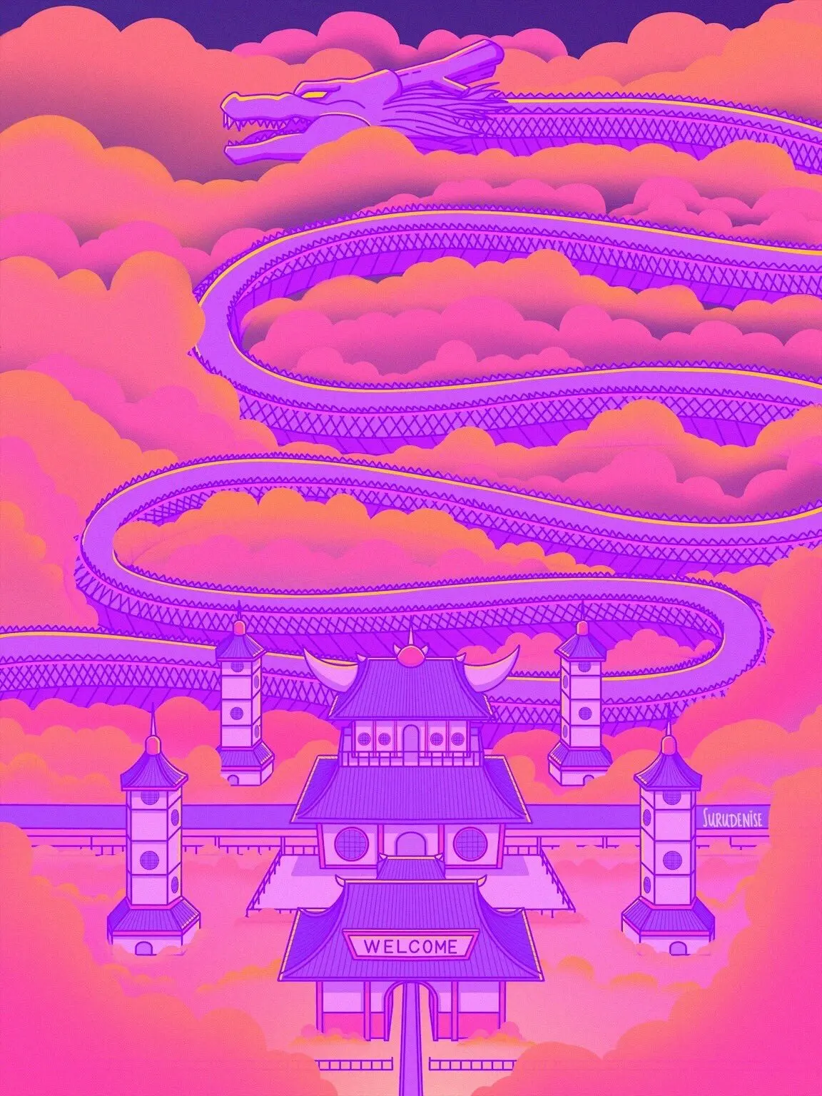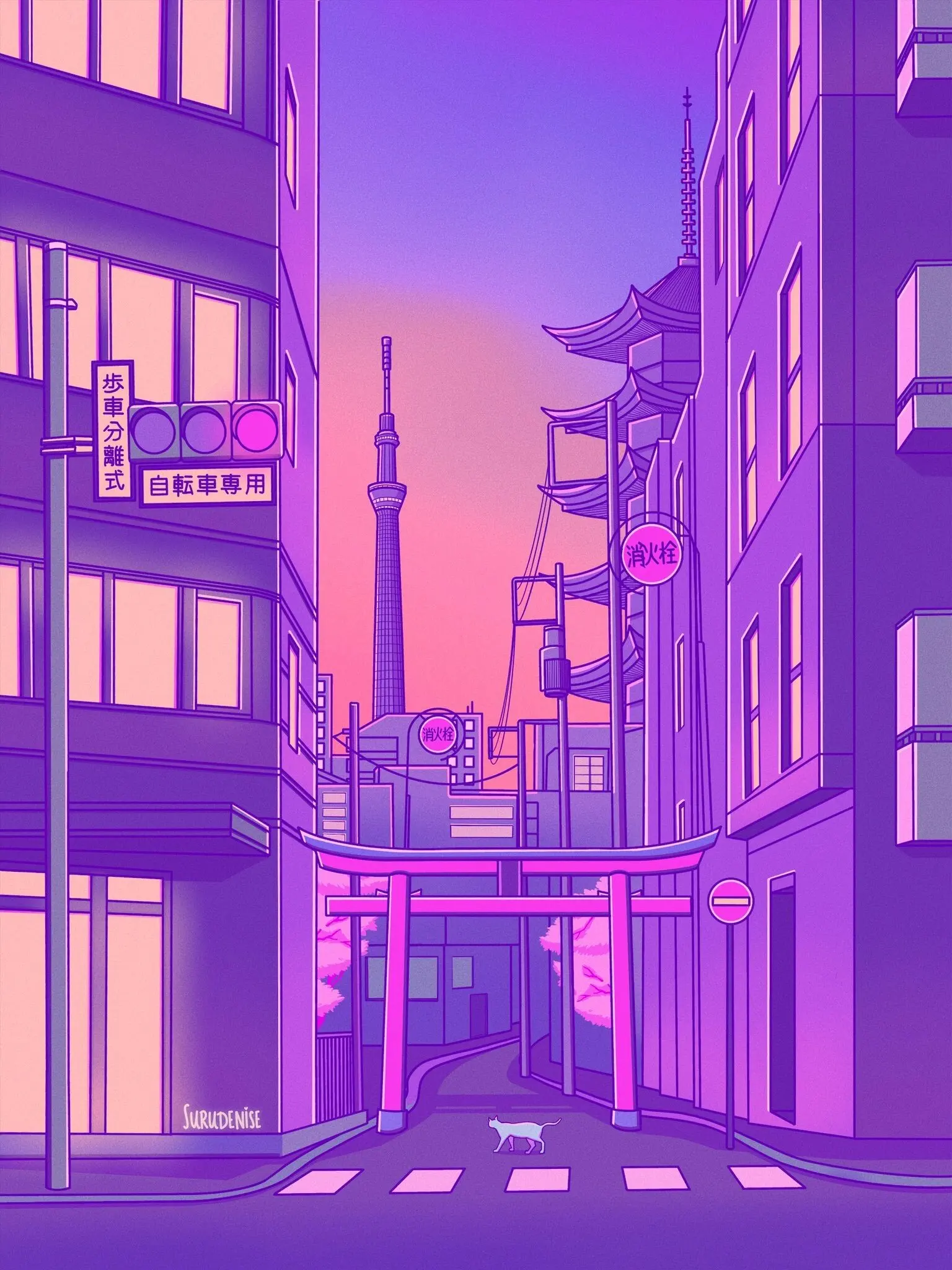 Японская, Tokyo уличный Ночной городской постер, двухмерный неоновы...