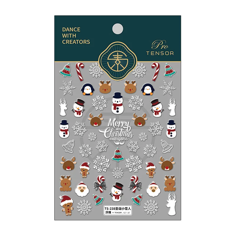 Новая технология рельефная 5D наклейка для дизайна ногтей ультра-тонкая трехмерная рельефная Рождественская серия наклейка для украшения ногтей