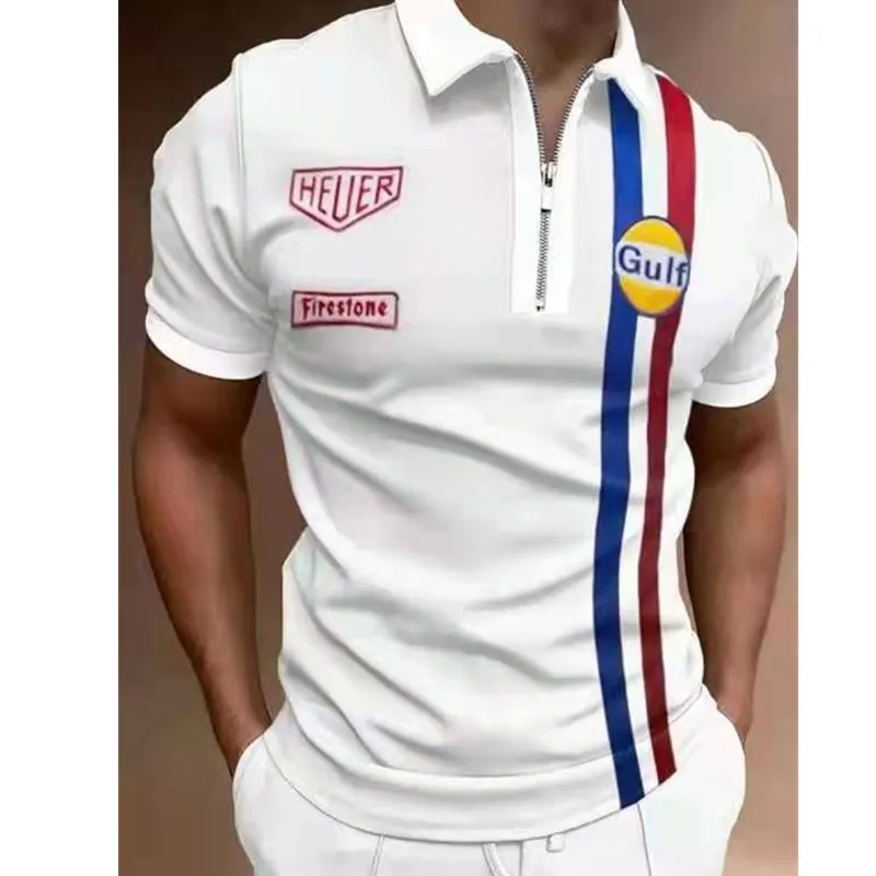 Новинка 2022, Летняя мужская рубашка-поло, рубашки-поло на молнии с...