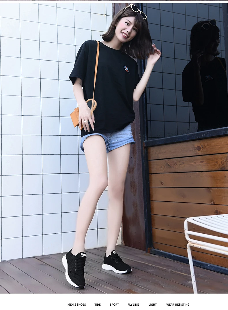 Женские теннисные туфли, сетчатые дышащие, без застежки, на толстой платформе, увеличивающие рост, уличные кроссовки