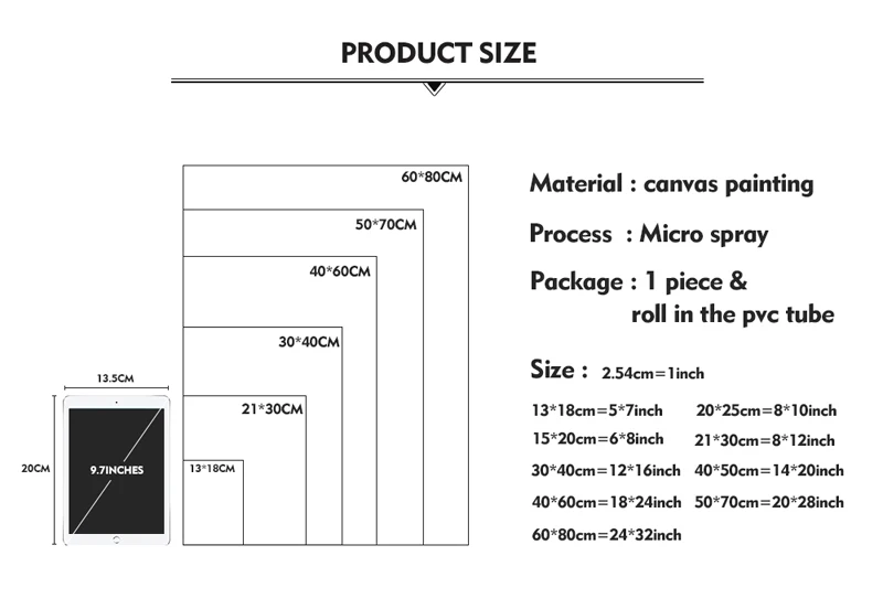 1. Бренд: счастливо2. Название: Картина на холсте3. Размер: 5*7 дюймов (13*18 см); 6*8 дюймов (15*20 см); 8*10 дюймов (20*25 см); 8*12 nches (21*30 см); 12*16 дюймов (30*40 см) ;13*20 дюймов (35*50 см); 16*24 дюйма (40*60 см); 20*28 дюймов (50*70 см) ; 24*32 дюйма (60*80 см)4. Материал: хлопковый холст высокого качества5. Посылка: 1 шт. (без рамки)6. Посылка: свернутая ПВХ-трубкой7. Подгонянный: любой размер подгоняется. Если вам нужна Настройка, пожалуйста, свяжитесь со службой поддержки клиентов.8. Подходит для украшения стен дома, подарок для друзей;Примечание:1. Рамки не включены, они слишком тяжелые, это будет стоить много стоимости доставки, и трудно отправить самолетом. Вы можете купить оправы в ваших местных торговых центрах или на сайте.2. Цвета могут немного отличаться из-за настроек монитора компьютера или состояния вашего мобильного телефона в3. На каждой стороне картины мы оставим 1 см белый край.4. Возможна Прямая доставка
