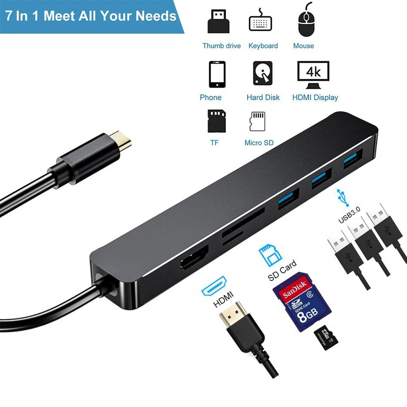 Обратите внимание: Кабель HDMI, VGACable,SD/tf-карта и т. д., используются только в качестве полной функции продукта дисплея и не включены в посылка. Только usb-хаб в посылка Различные модели имеют различный интерфейс и внешний вид, пожалуйста, выберите подходящую модель перед покупкой: (1) 7 в 1-VGA Модель: HDMI 4K + VGA + SD/TF + 3 * USB3.0 рот (2) 6 в 1-модель перекупщика карт: HDMI 4K + SD/TF + 2 * USB3.0 + PD USB-C ртом (3) 4 в 1-HDMI Модель: HDMI 4K + USB3.0 + USB2.0 + PD USB-C ртом HDMI поддерживает 4K 30HZ, VGA поддерживает 1080P,PD Зарядка: поддерживает максимум 60W. Важное примечание -При подключении к ноутбуку Не поддерживайте зарядку мобильного телефона через USB-A или USB-C женский порт из-за ограниченного тока. -Пожалуйста, предоставьте источник питания при подключении к энергоемким устройствам; Поддержка подключения только 1 HDD/SSD одновременно. -Чтобы предотвратить помехи Wi-Fi, вы можете обернуть корпус линии рядом с портом type-c фольгой или с помощью маршрутизатора частоты 5 ГГц. Кроме того, При неиспользовании отключите ethernet-кабель и PD зарядный кабель от адаптера. -Для ноутбуков Xiaomi мы предлагаем подключение к неоригинальному адаптеру питания PD, например, к адаптеру питания Apple, Dell для обеспечения нормального использования.