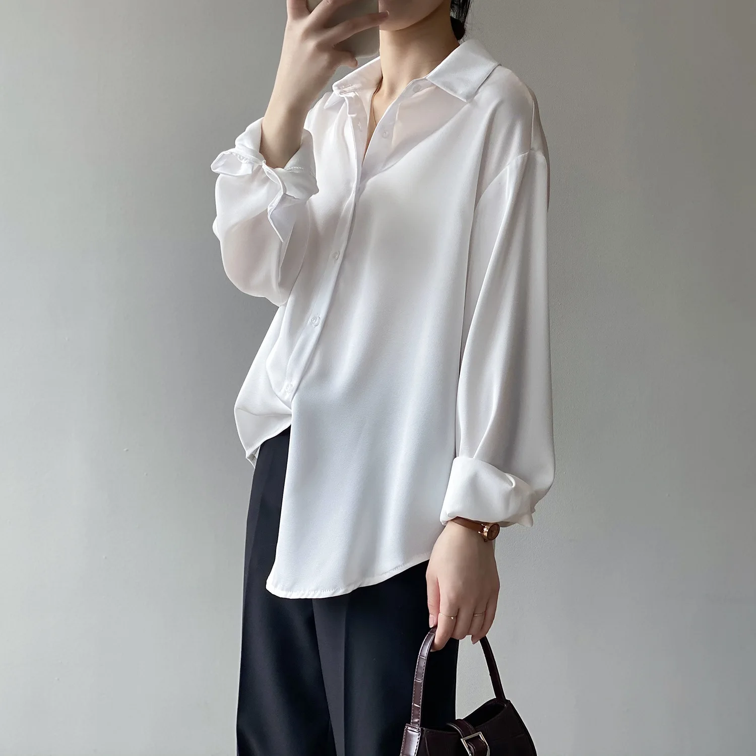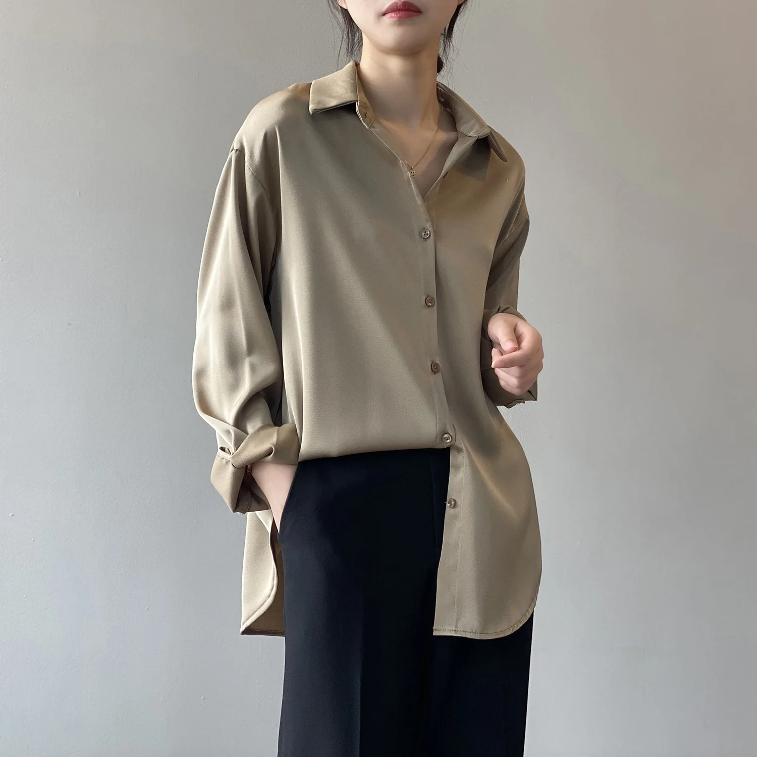 Женские топы и блузки, корейские женские блузки на пуговицах, Осенний Топ, Офисная Рабочая блузка, элегантный топ