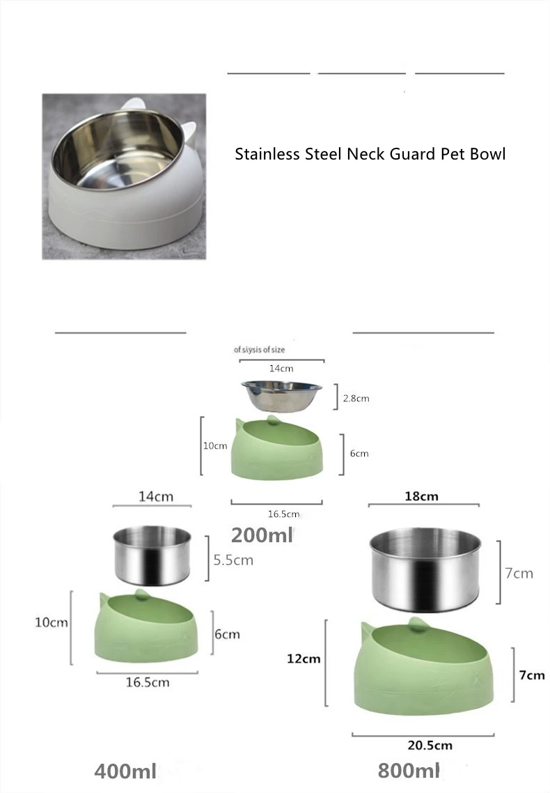 Особенности:1. Миска из нержавеющей стали из ПЭТ, отличного качества, прочная, легко моется.2. Дизайн кошачьих ушей, милый и красивый.Наклон 3,15 градусов, защита шейного позвонка домашних животных, удобно есть домашним животным.4. Прочная основа, нескользящая.5. Разные цвета отвечает различным предпочтениям.6. Разумно увеличивает общую высоту кошки и уменьшает давление на шейный отдел позвоночника, что способствует здоровому развитию кошки.Примечание: только миски, на картинке нет других демонстрационных аксессуаров!Характеристики:Тип: миска для домашних животныхМатериал: пищевой ПК + нержавеющая сталь 304Цвет: скандинавский розовый; Скандинавский зеленый; Скандинавский синий; Белый; ЧерныйРазмеры: прибл. 16,5x10 см/6,50x3,94 дюйма Чаша: около 14 см/5,51 дюйма