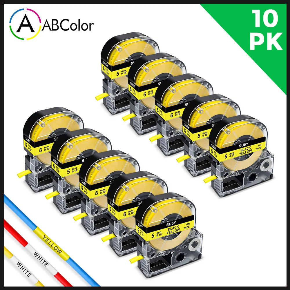 10 шт., термоусадочные трубки 5 мм9 мм, черные на желтой ленте, совместимые с EpsonKing Jim SU5Y 400, производитель этикеток