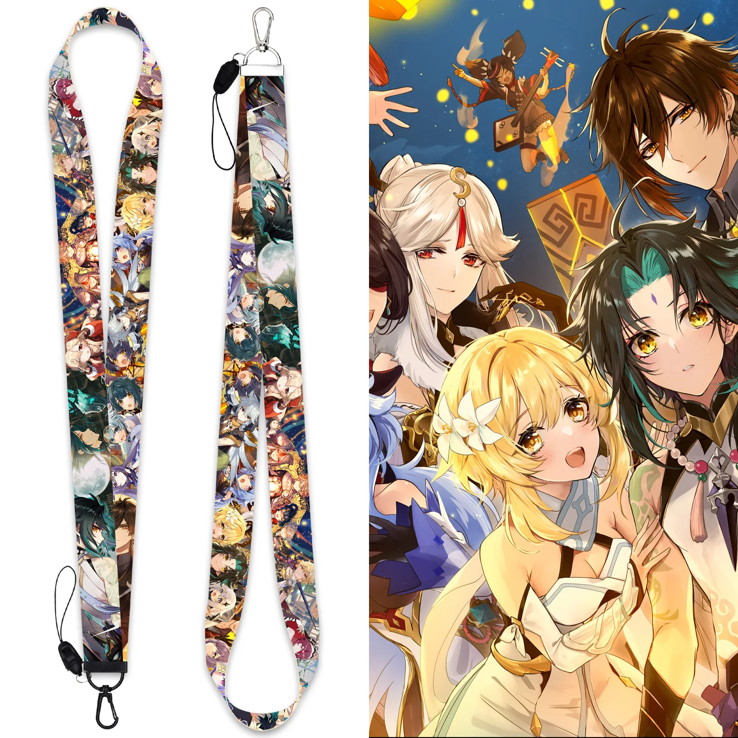 Брелок для ключей Game Genshin Impact Zhongli Xiao, шнурок с мультяшным рисунком, подвеска на шею, ремешок для ID значка, держатель для телефона, подарок