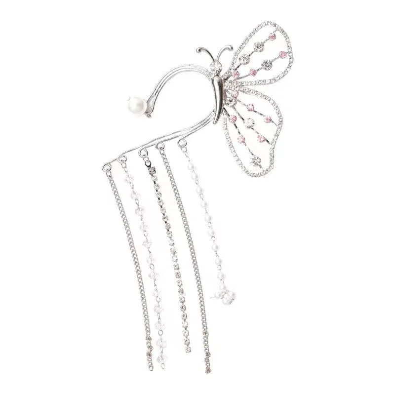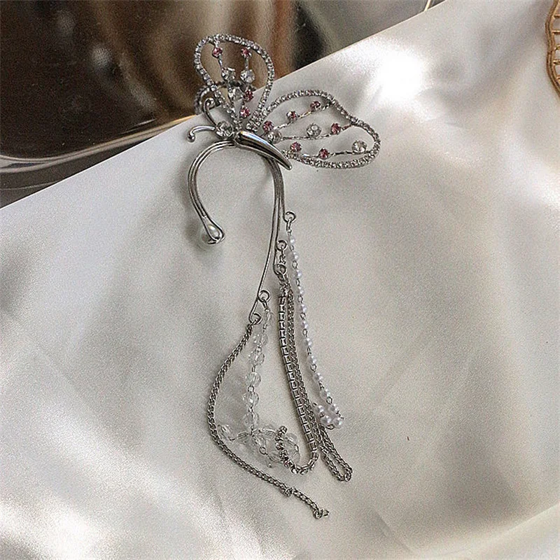Серьги Стразы с длинными кисточками в Корейском стиле, серьги-клипсы с кристаллами в виде бабочки для женщин, украшения для свадебной вечеринки