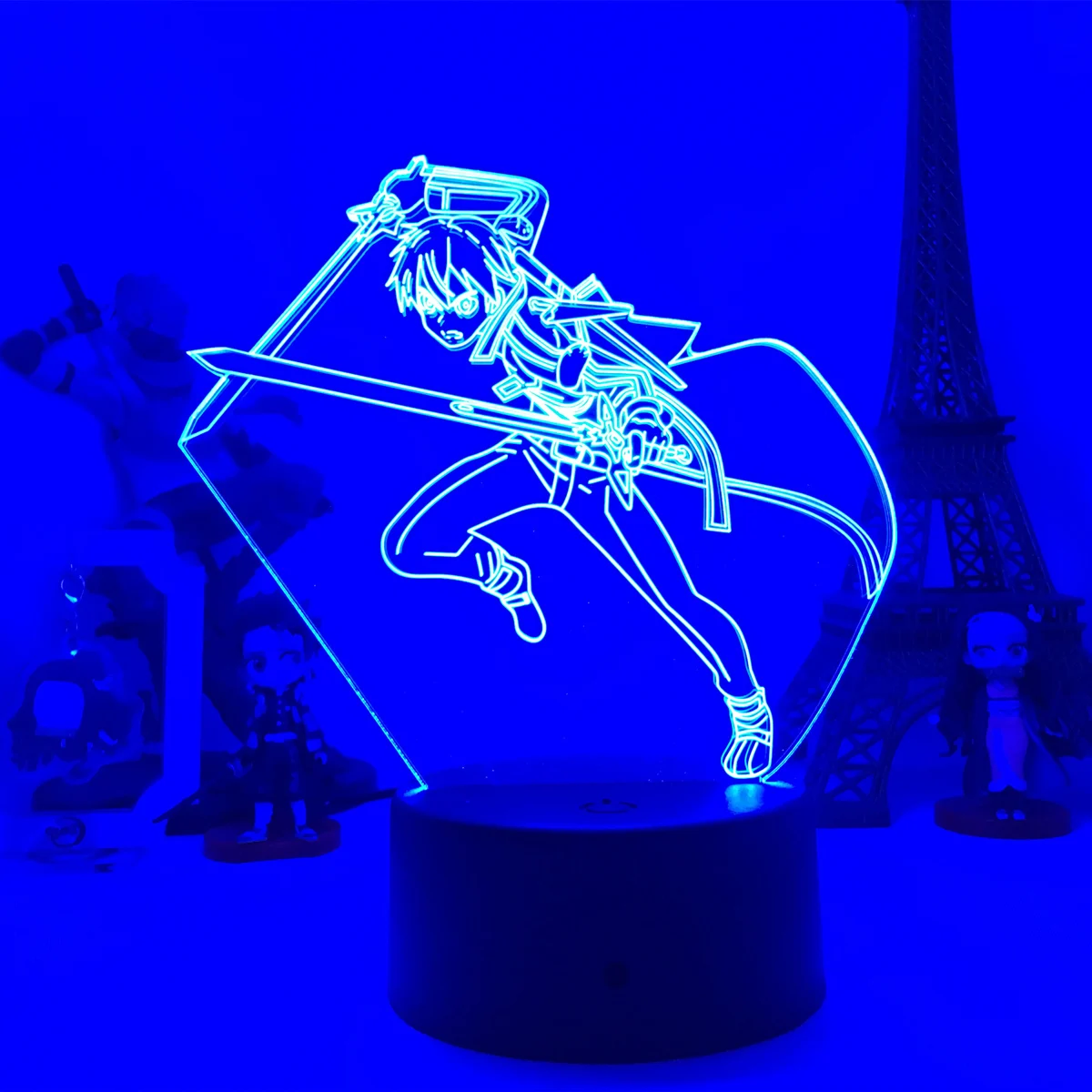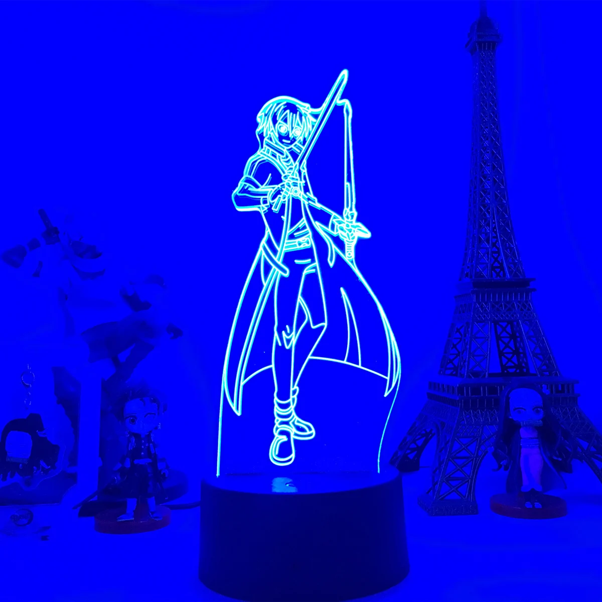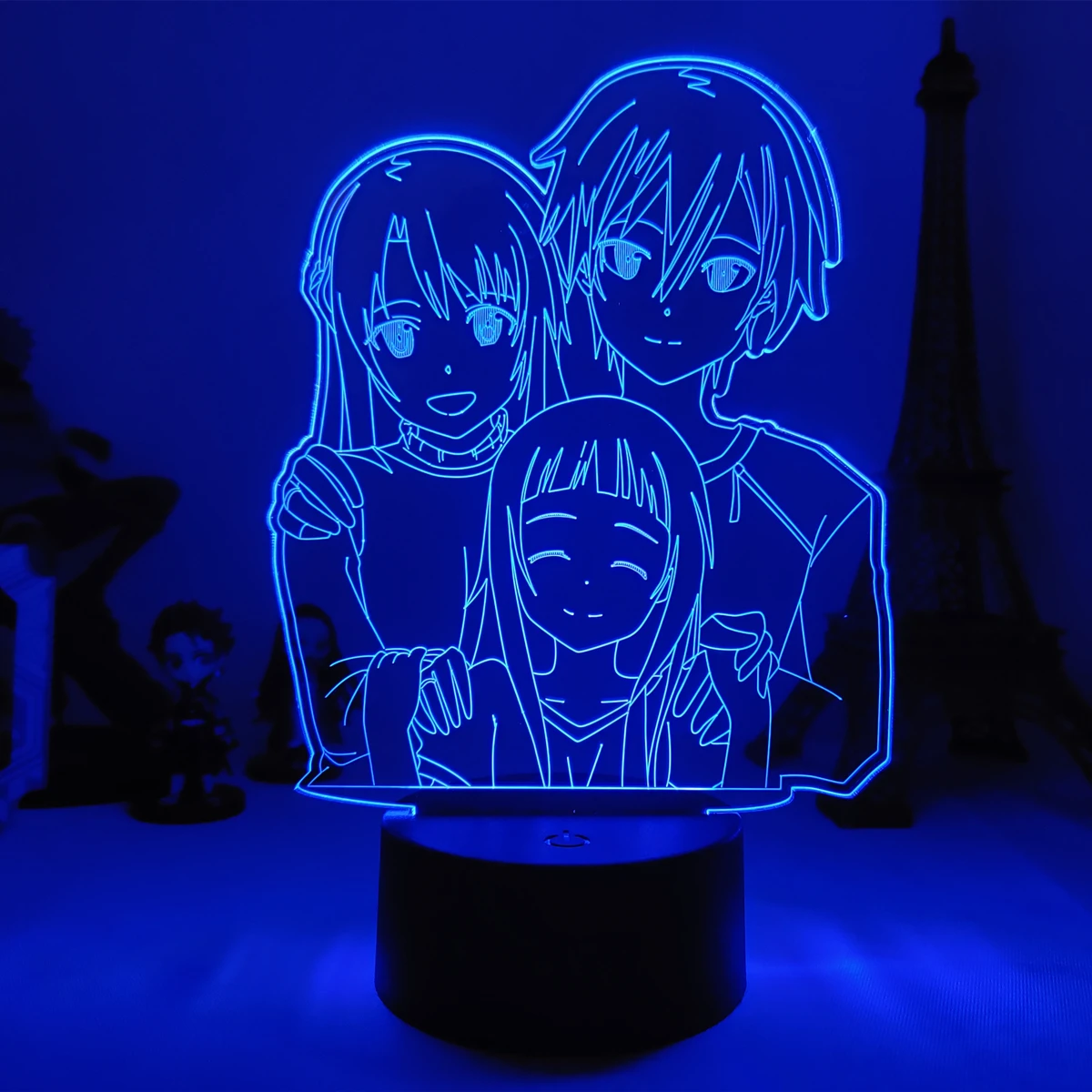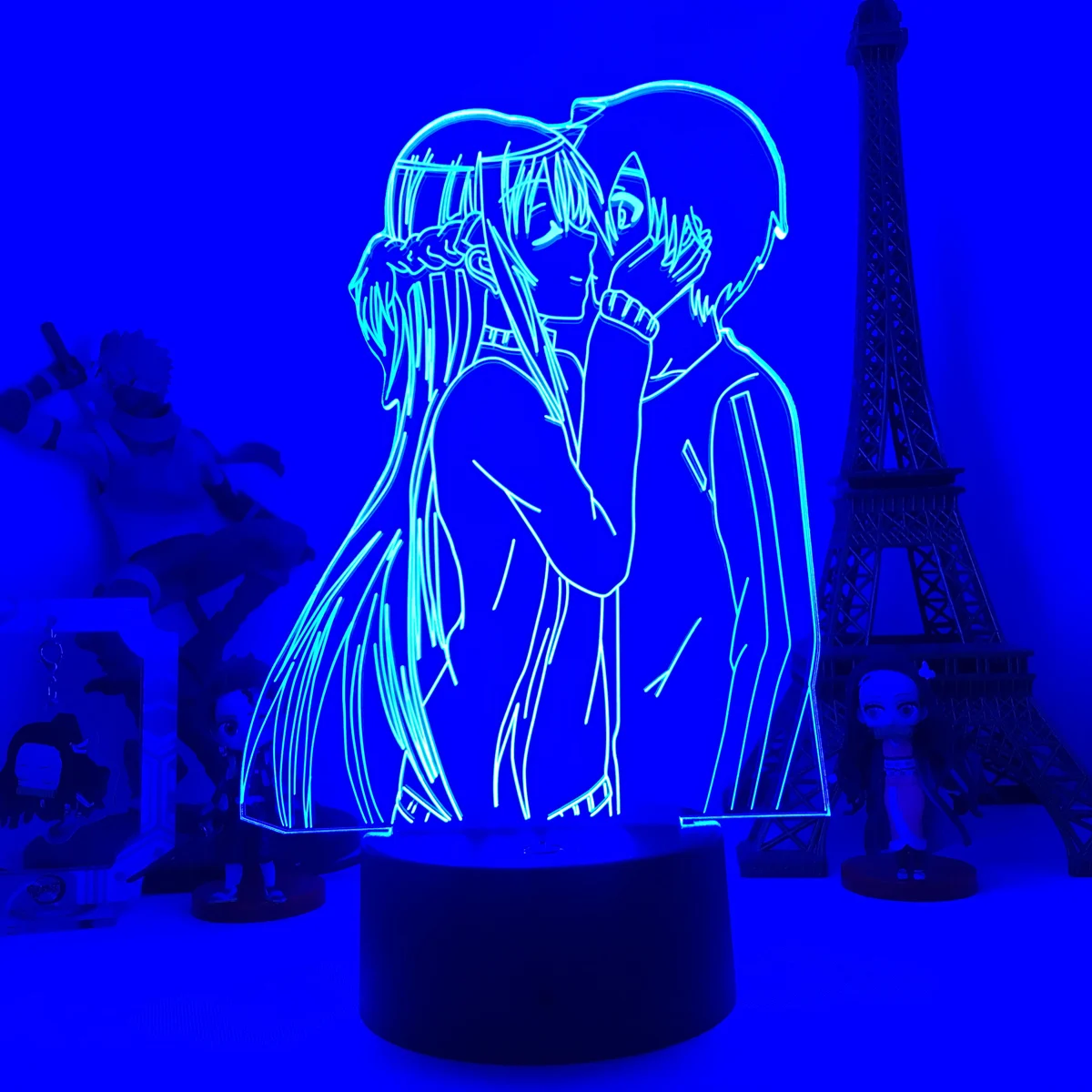Светодиодный ночсветильник в стиле аниме 3d, меч искусства онлайн, Kirito и Asuna для спальни, Декор, ночсветильник, подарок на день рождения, настольная лампа с USB, манга, Сан