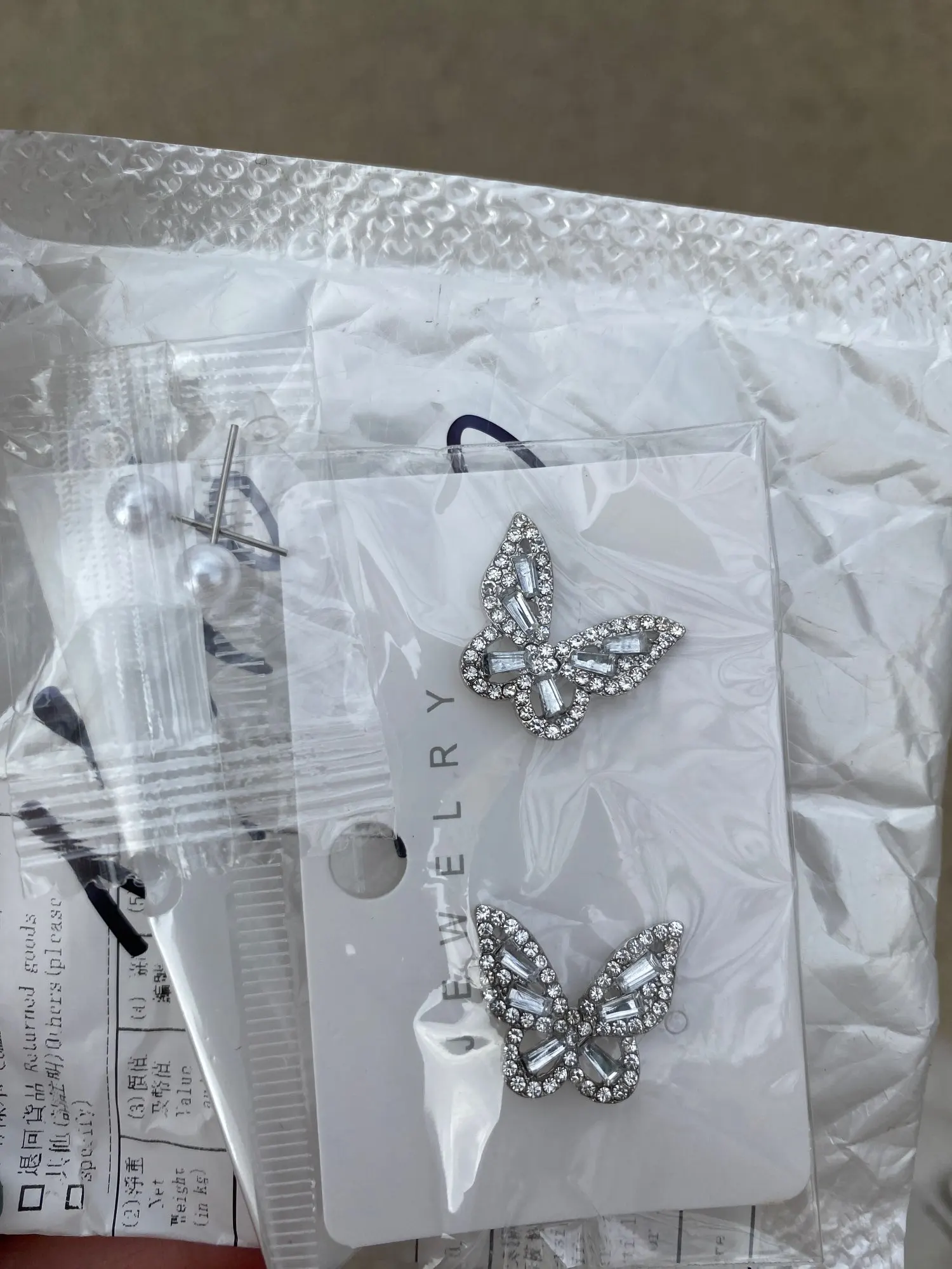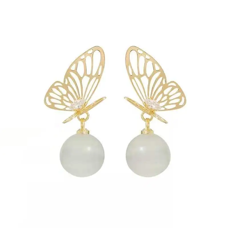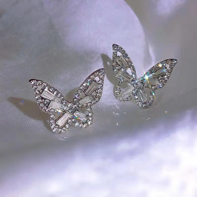 Серьги-гвоздики женские, в стиле панк, стразы, с бабочками, 2021