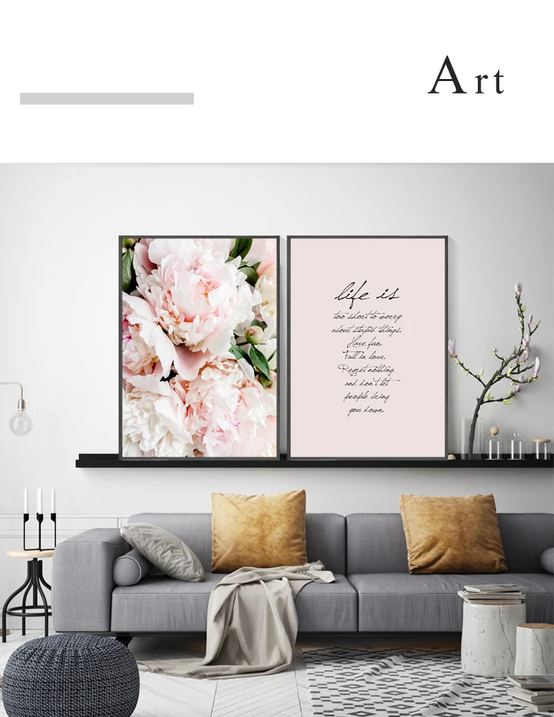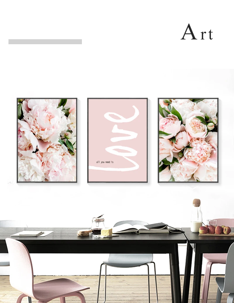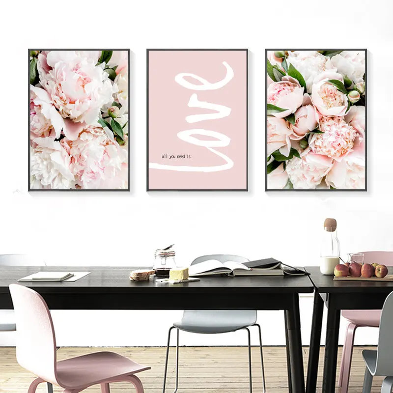 Скандинавский Декор для дома, настенная живопись, розовый цветок, Е...