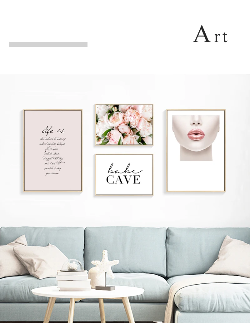 Современная модная розовая Картина на холсте, картина в скандинавск...