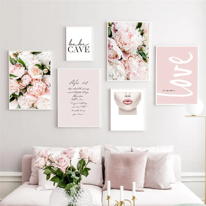 Домашний декор, современное розовое милое изображение цветов, насте...