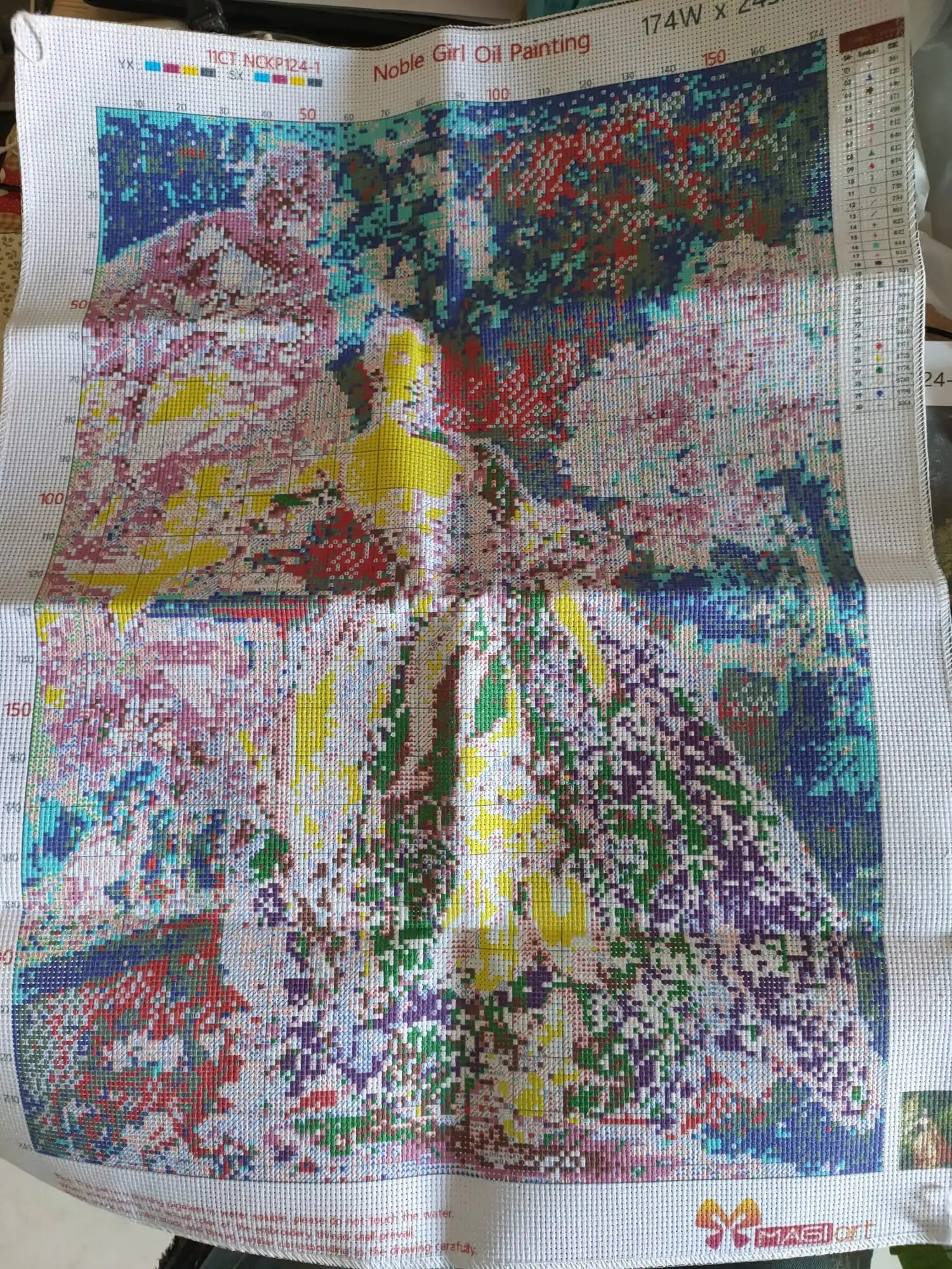 Наша полная вышивка крестиком используется усовершенствованная Водорастворимая печать, вы закончили вышивку, вышитая ткань в теплой воде может легко смыть печать. Но частичная вышивка использует технологию 5D печати, более реалистичный цвет, печать не смывается.