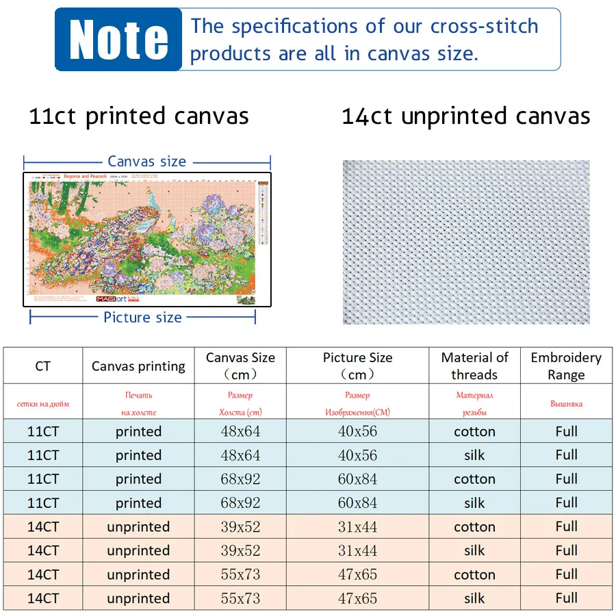 Советы 1:Фактический размер изделия может варьироваться от 1 до 3 см от размера холста. Это нормально.