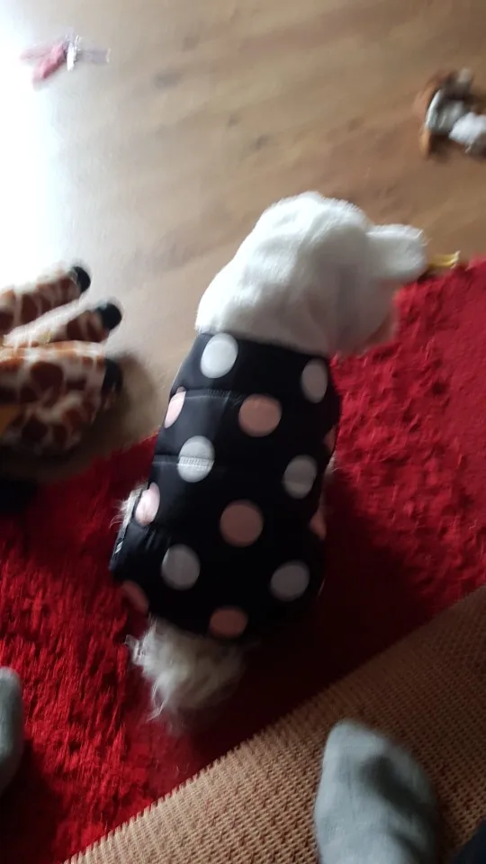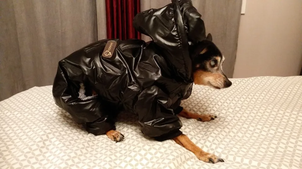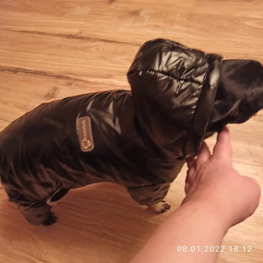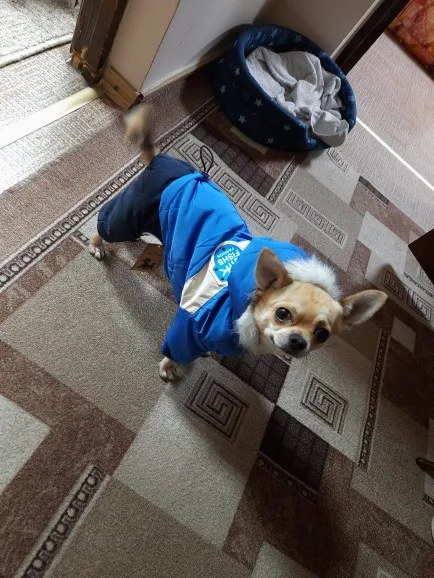 комбинезон качественный ,без запаха,приятная мягкая утепленная подкладка,но к сожалению на девочку 7кг джек рассел размер 2XL оказался маловат