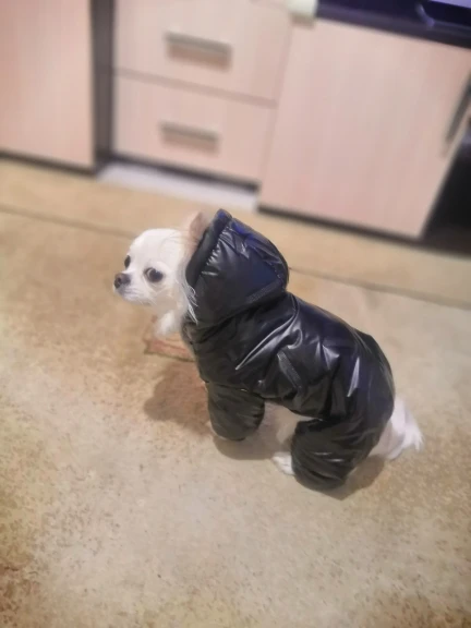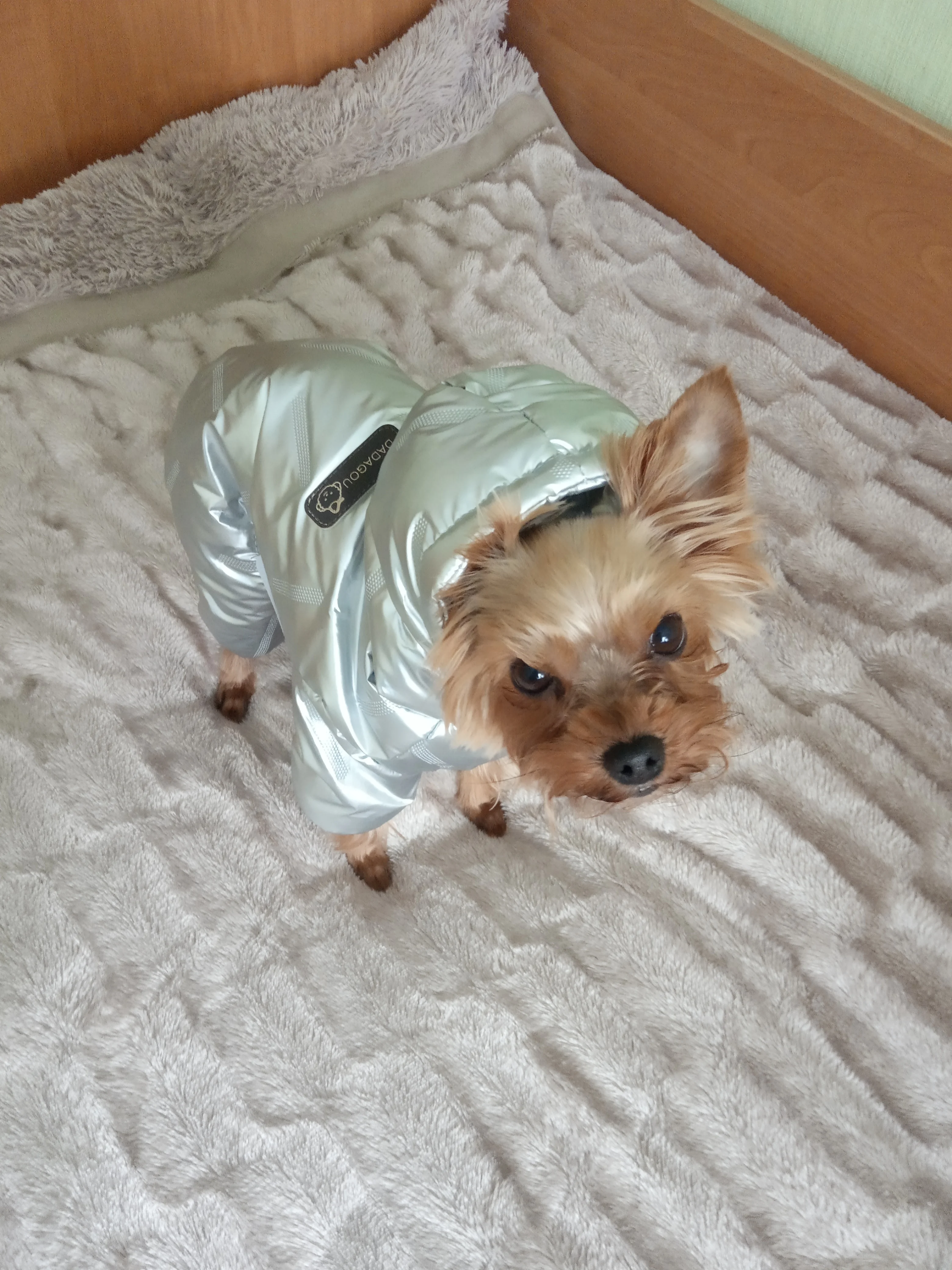 Доставка в срок и в постамат. Пуховичок потрясающий, такой классный, в реале лучше и красивее, и такой тёпленький♥️, верхняя ткань водонепроницаемая, внутри флис, цвет серебристый красивущий. Брала на девочку йорка мини 9 мес. весом 1.700, подошло идеально. Очень хорошее качество, ещё лучше цена, а в Москве такой комбез в интернет-магазине сейчас продаётся за 1550 руб., в обычном зоомагазине, понятное дело, дороже в разы. Большое спасибо продавцу