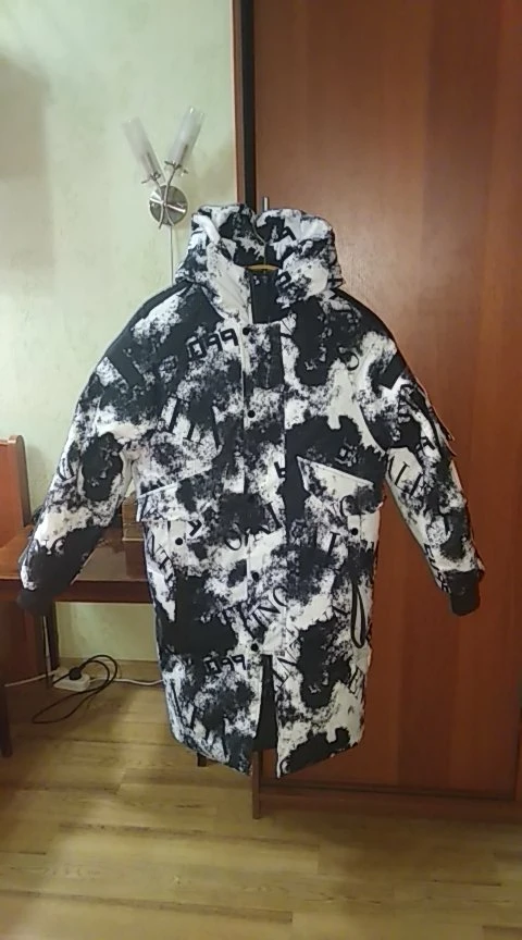 Куртка не черно-белая, а черно-бежевая. Но мне это не принципиально. Качество пошива отличное. Я довольна. Продавец реагирует быстро. Попросила отправить максимально быстрее и он сразу же отправил куртку.