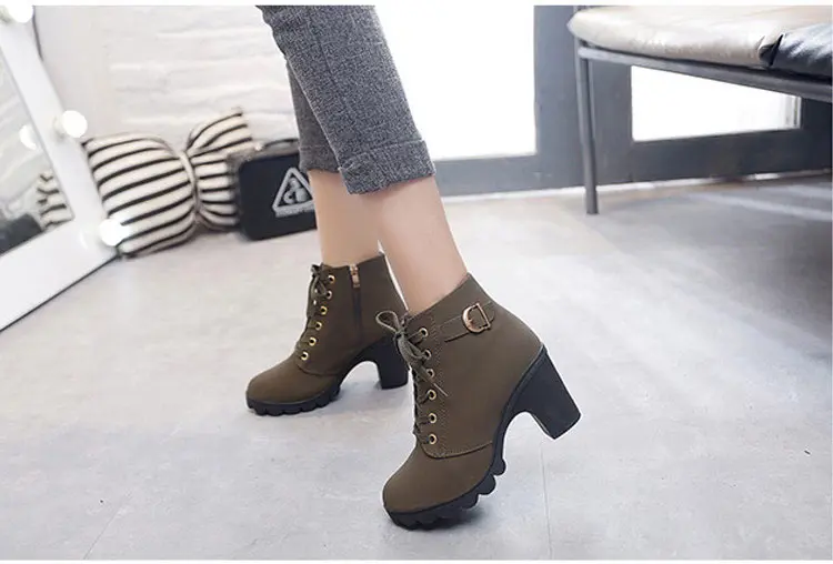 Женские ботинки из ПУ кожи, на шнуровке, на высоком каблуке